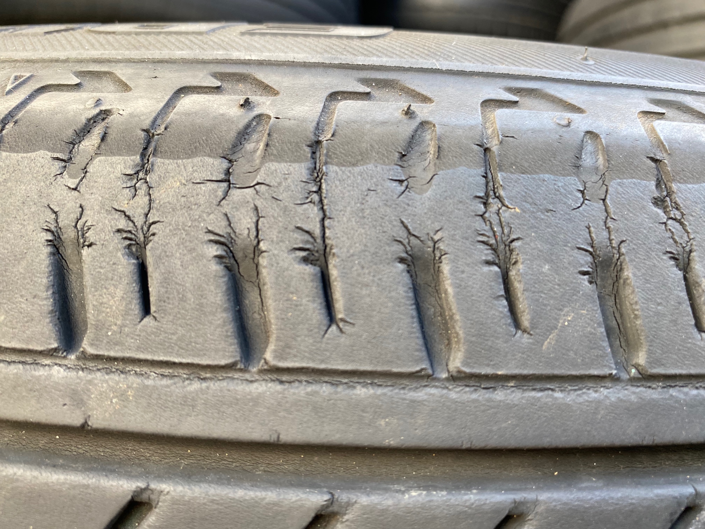 だいぶひび割れが入っていますね。こうなるとタイヤの横は柔らかく作るためにコードという部分がありそこにヒビがたどり着くとバーストの危険性があります。