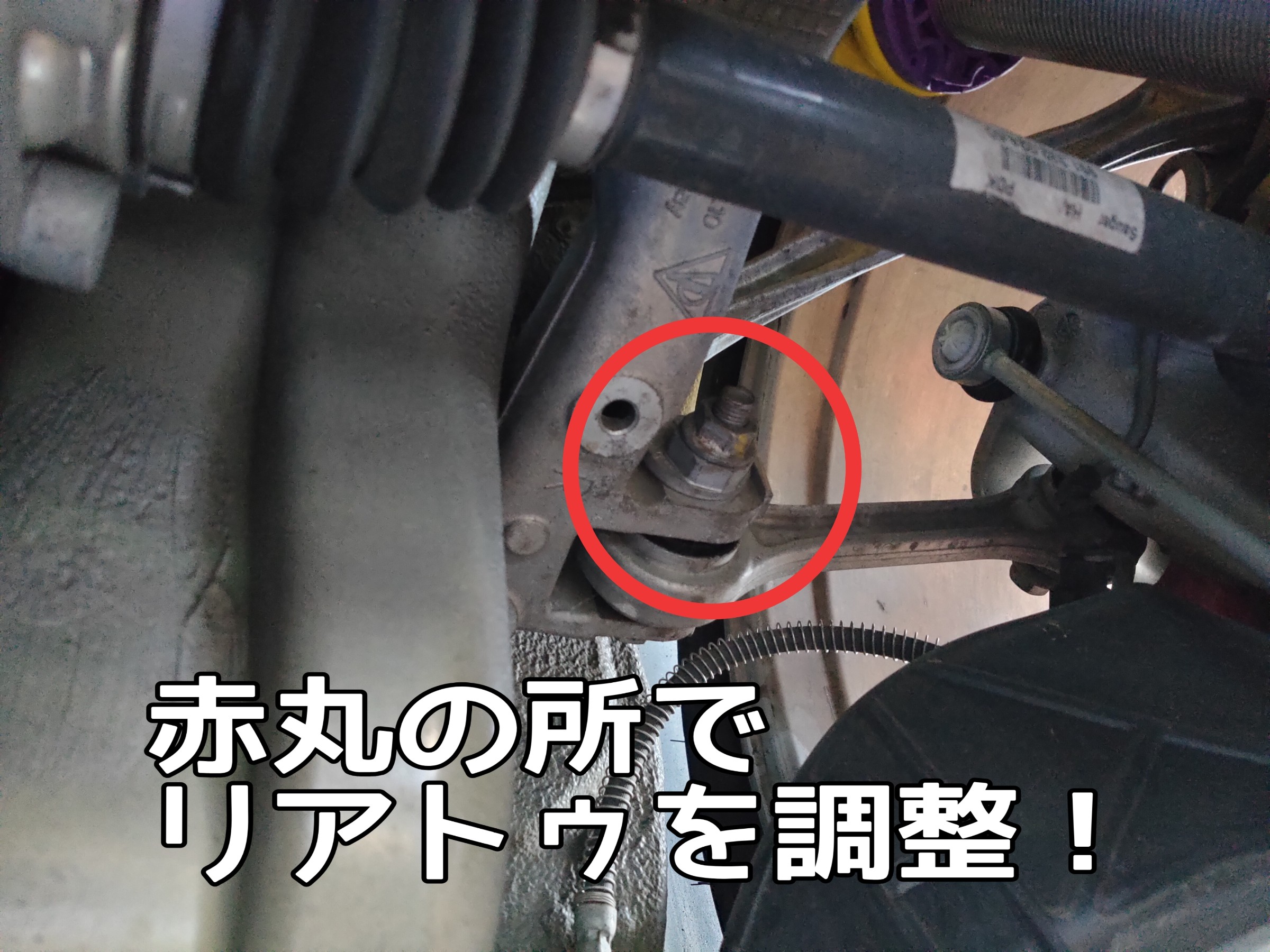 タイロッドや偏芯ボルトを回して調整を行います!