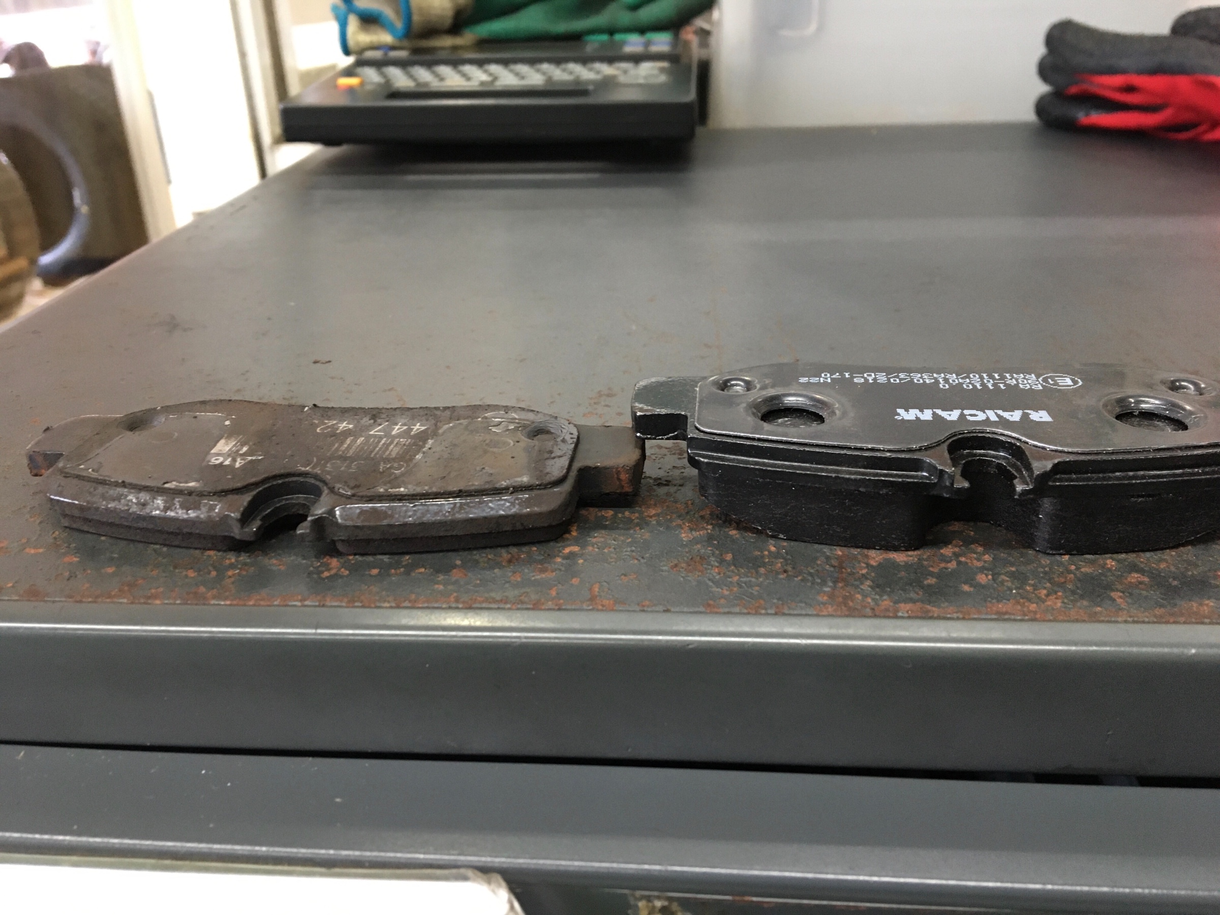 リアのブレーキパッドの残量が少なくなっていたのと
