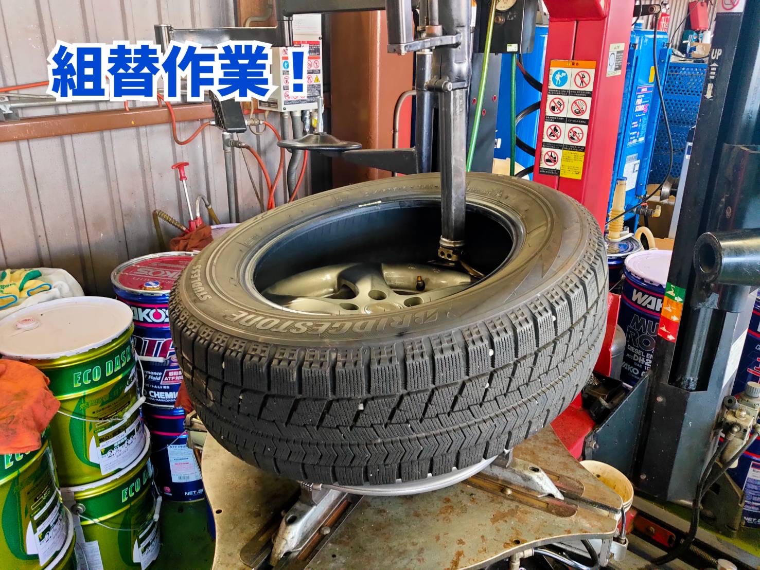 古いタイヤを外し新しいタイヤを取り付けていきます。