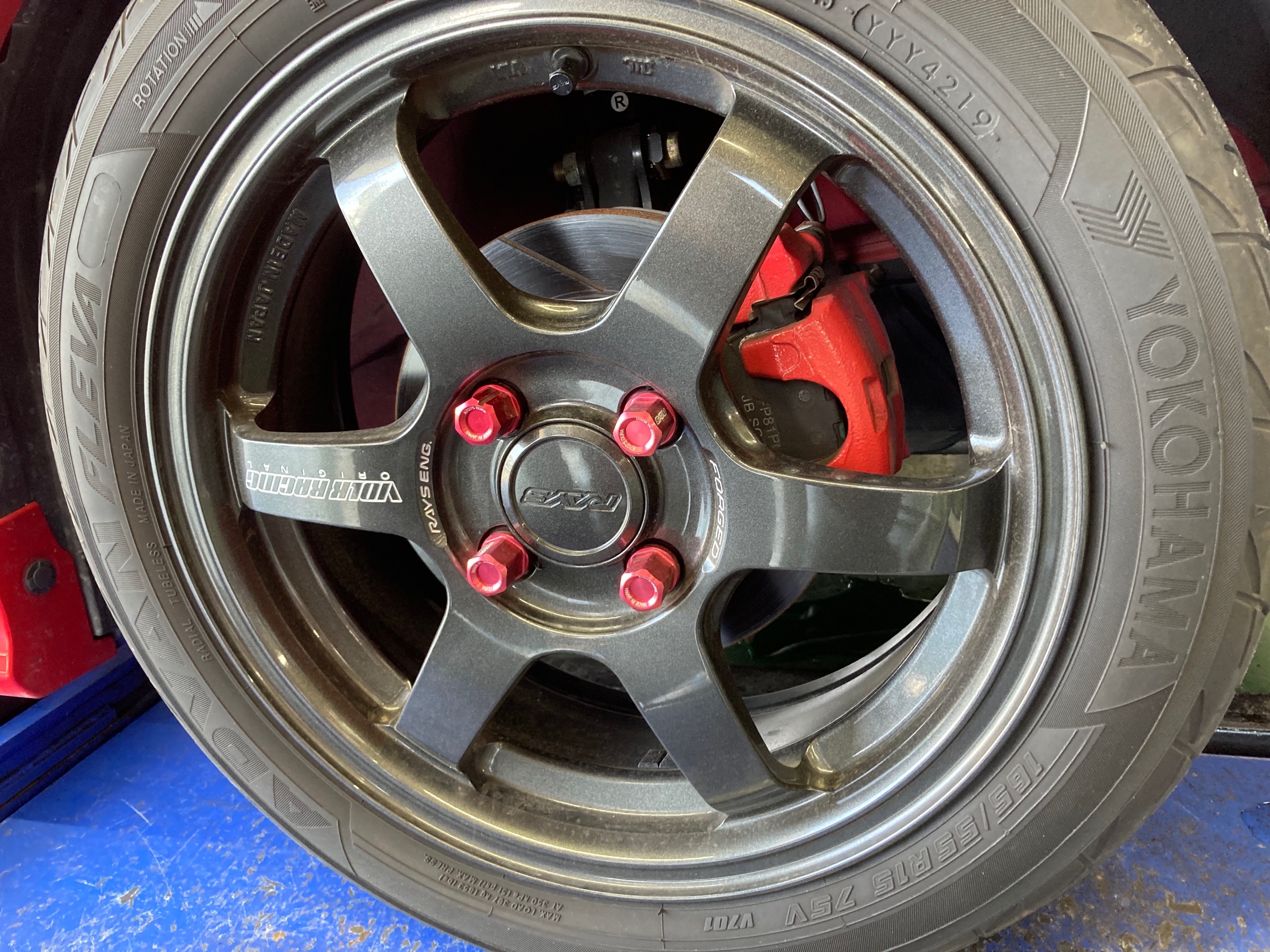 ちなみに装着しているホイールはRAYSのTE37 KCR。サイズは15X5.5 +45です。