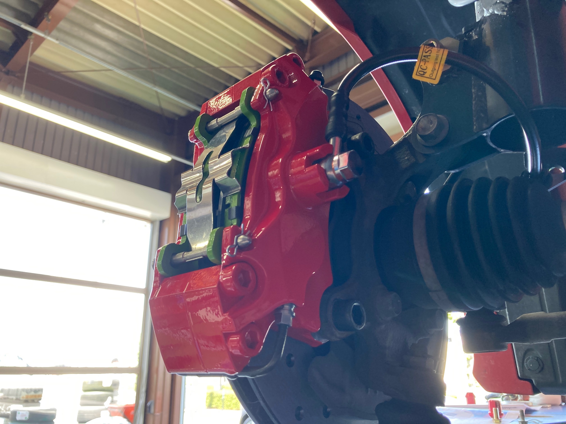 真っ赤なブレーキキャリパーに、白の彫り文字がめちゃくちゃカッコイイですね~!!