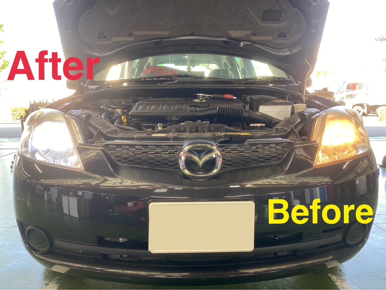 今回は マツダ デミオのヘッドライトバルブ交換を実施させていただきました♪パチパチ