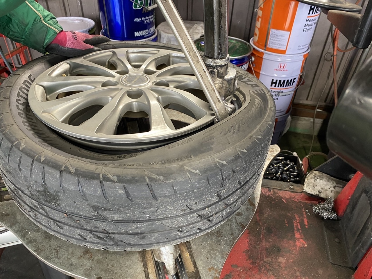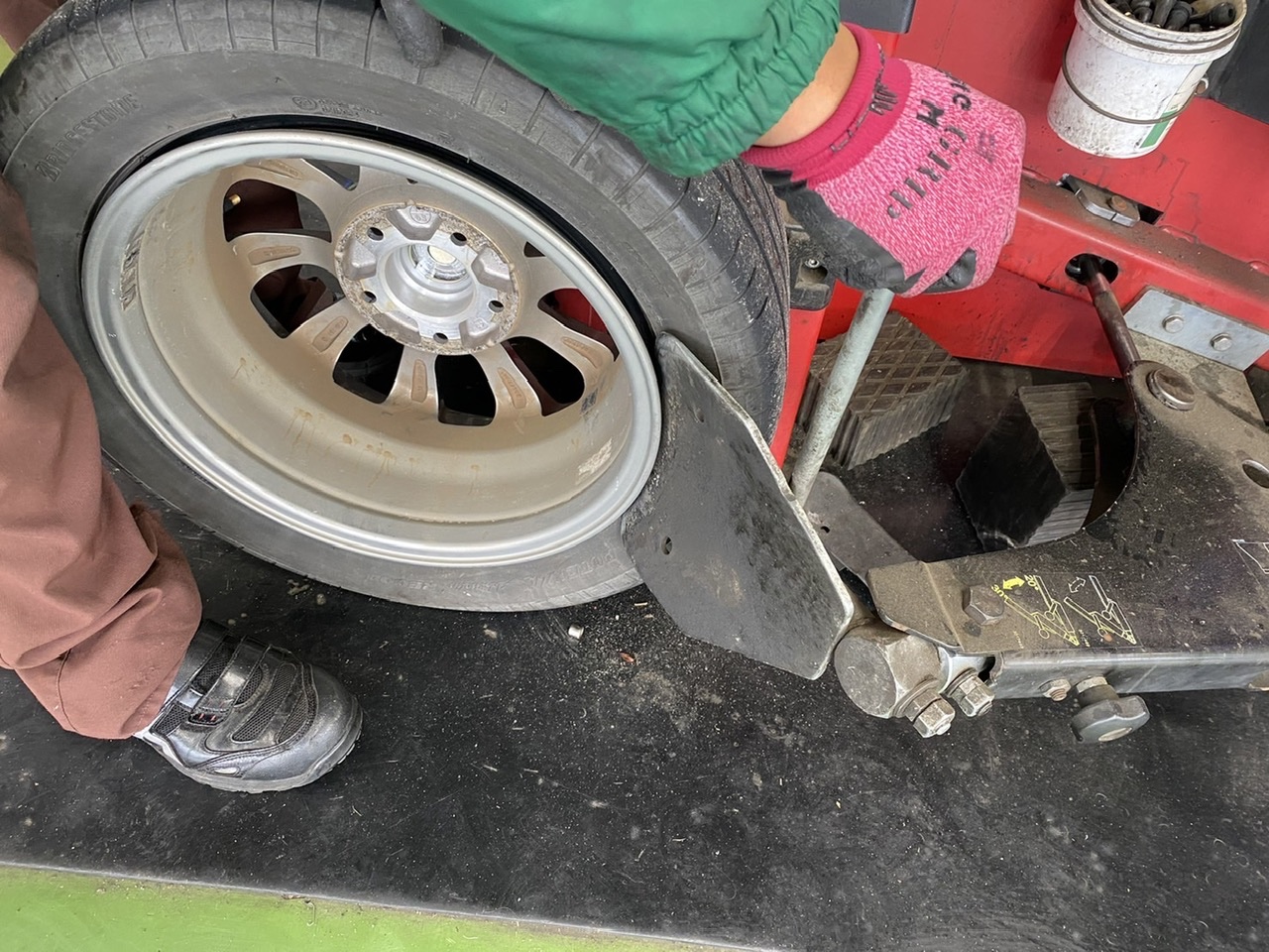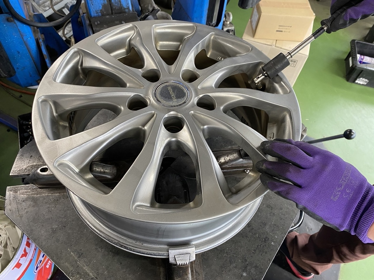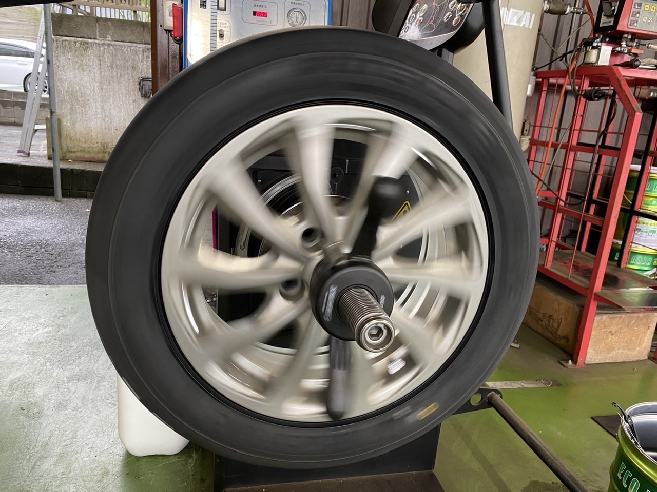 タイヤを組み、ホイールのバランスを調整していきます!