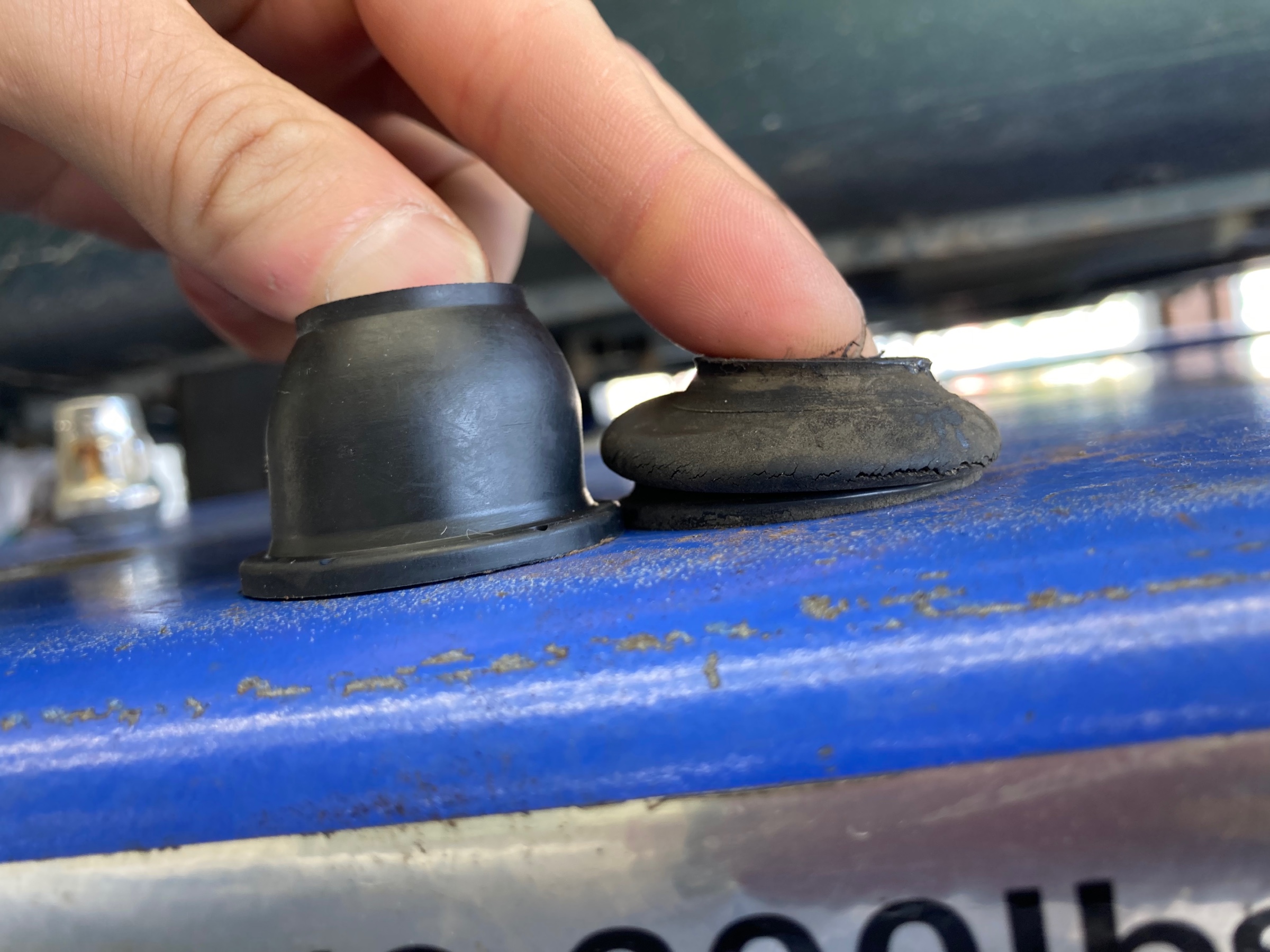 サスペンション周りに使用されているこのようなゴムのブーツ類は、破れていると車検に通らないのはもちろん、ひび割れにも要注意!