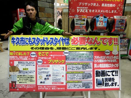 当店では、北海道・東北地方での圧倒的なシェアを誇るブリヂストン製のスタッドレスを数多く展示しておりますので、ご興味のあるお客様は、ぜひ当店までご相談に来てください(^◇^)