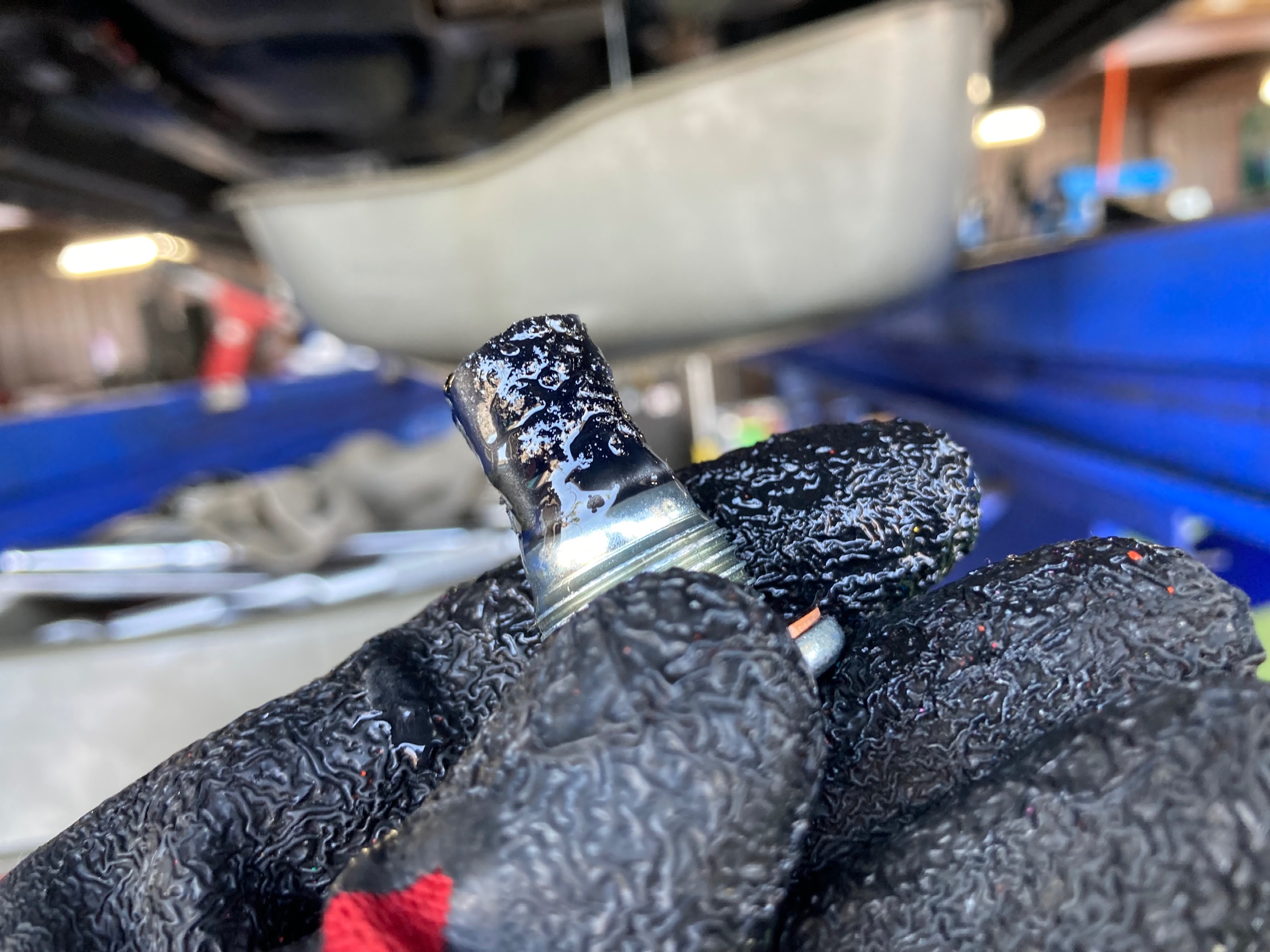走行距離はまだ1,300kmほどですが、リヤデフオイルのドレンボルトのマグネットを見てみると、すでにこれだけの鉄粉が付着していました↓