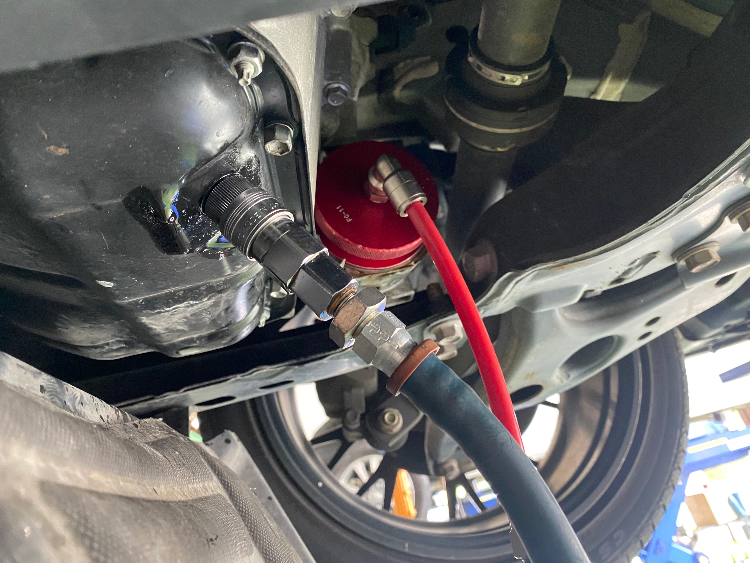 普段のオイル交換では落とし切れない汚れを、洗浄液を流しながら落として行きます!