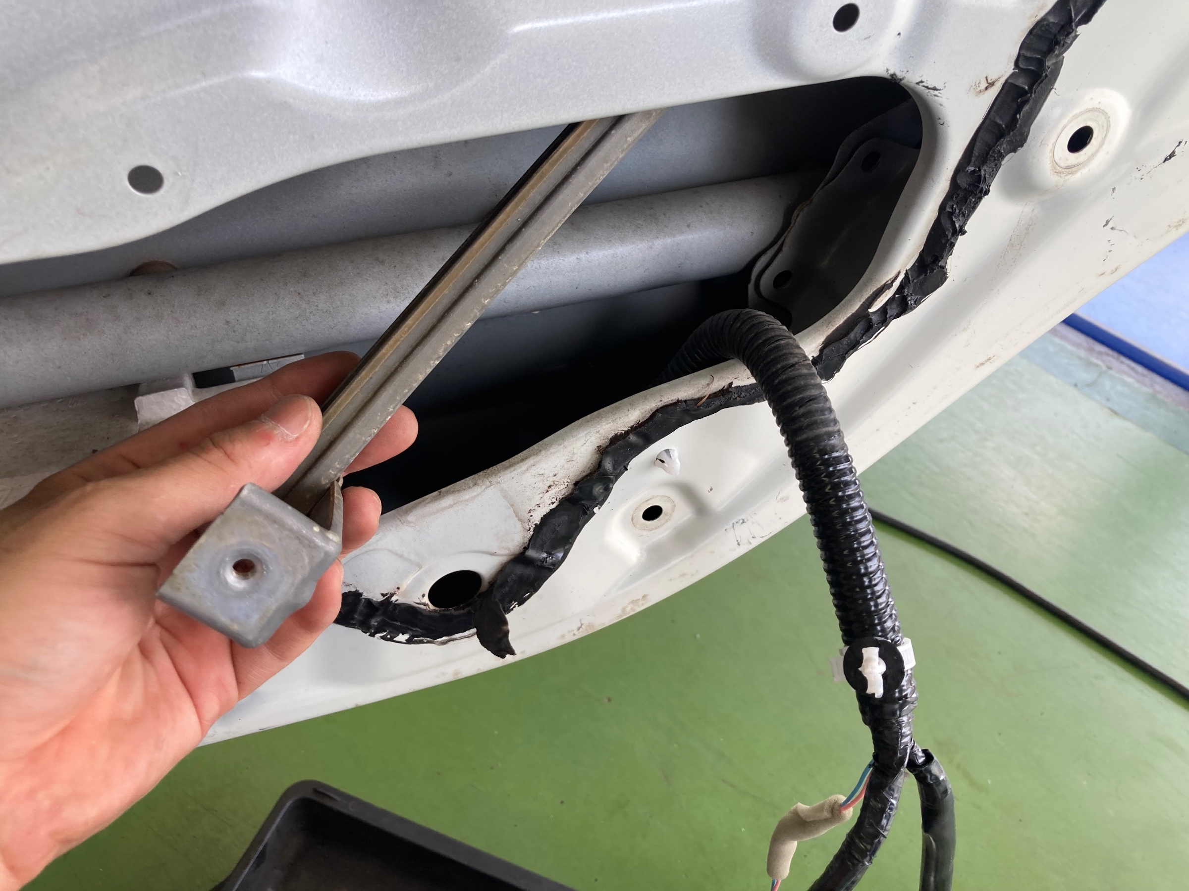 ドアガラスのガイドを取り外して、作業スペースを確保します↓