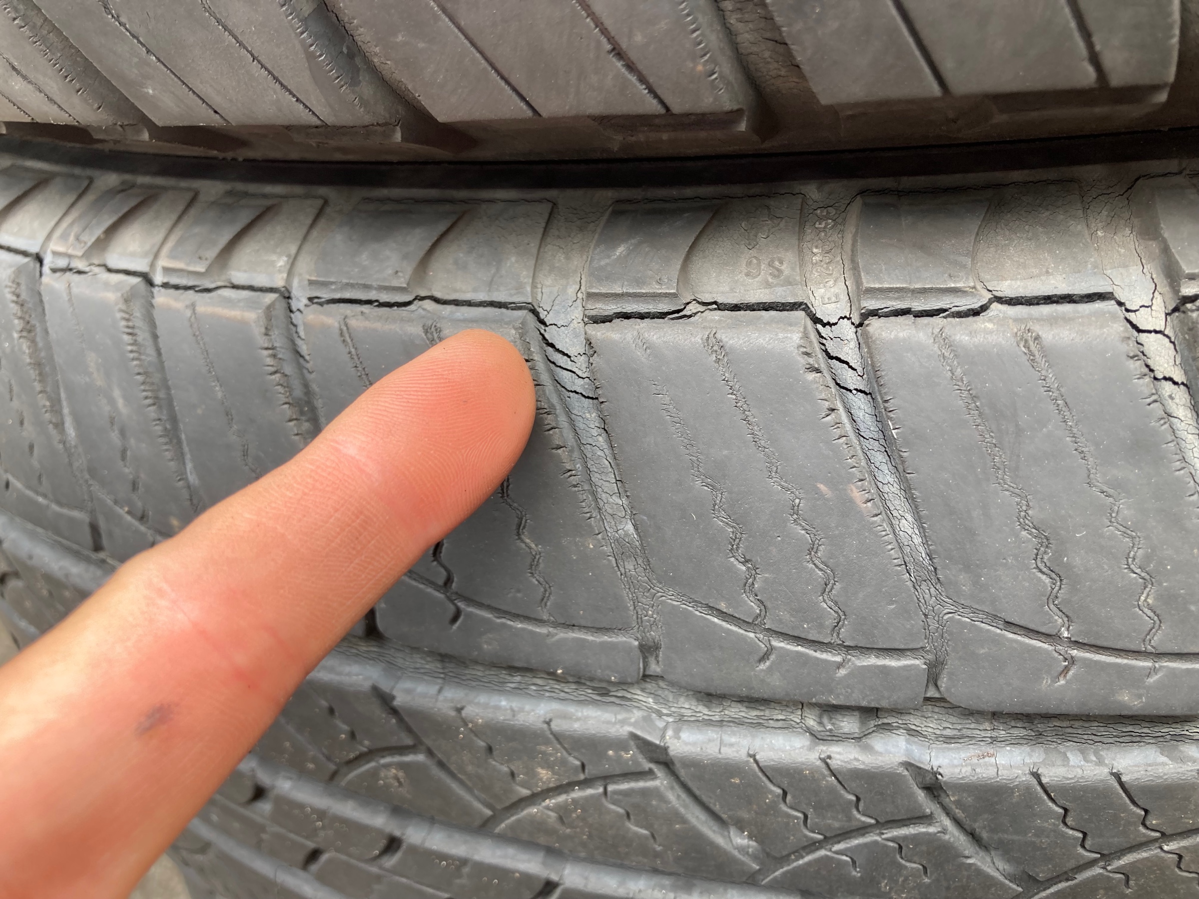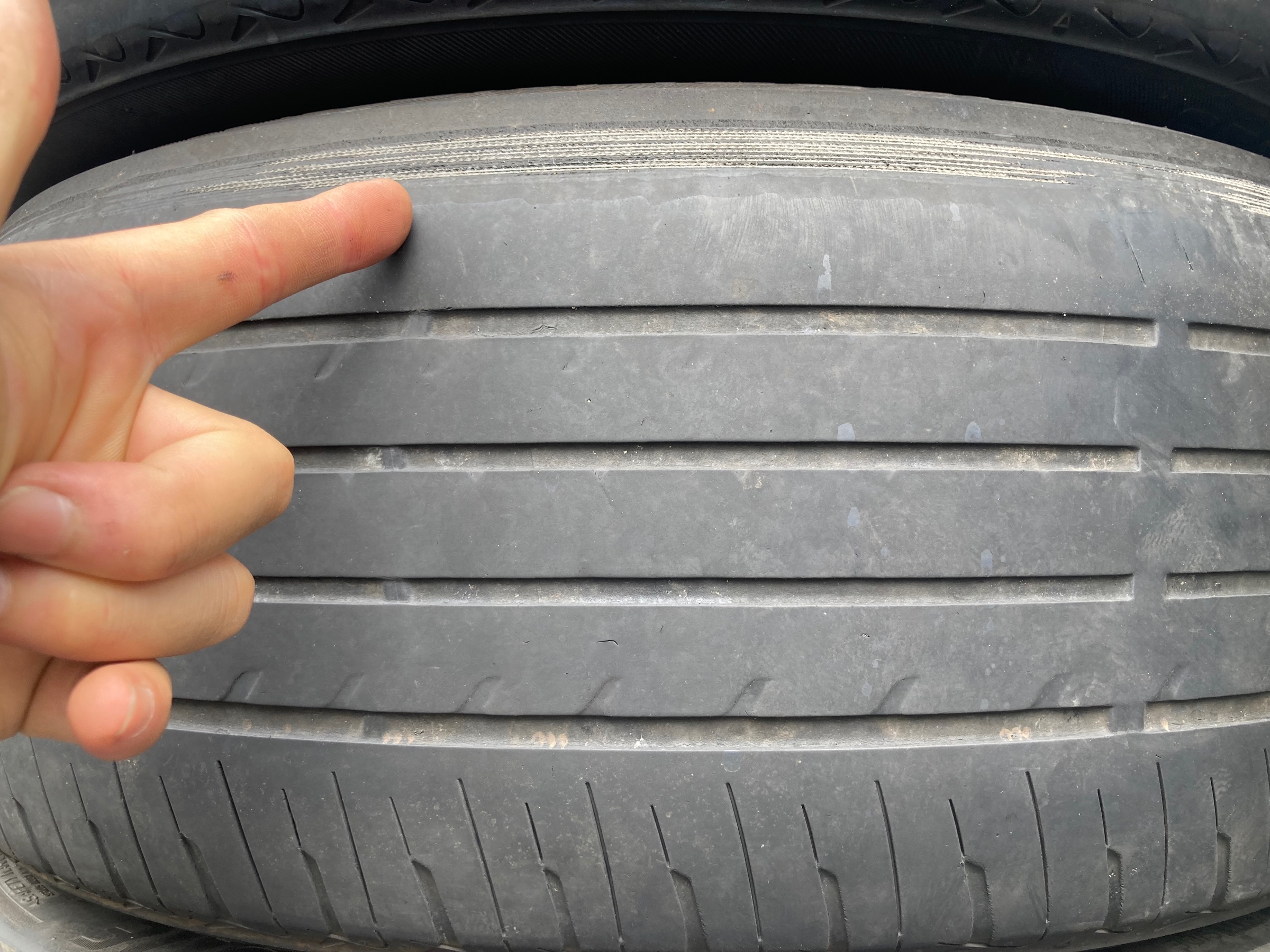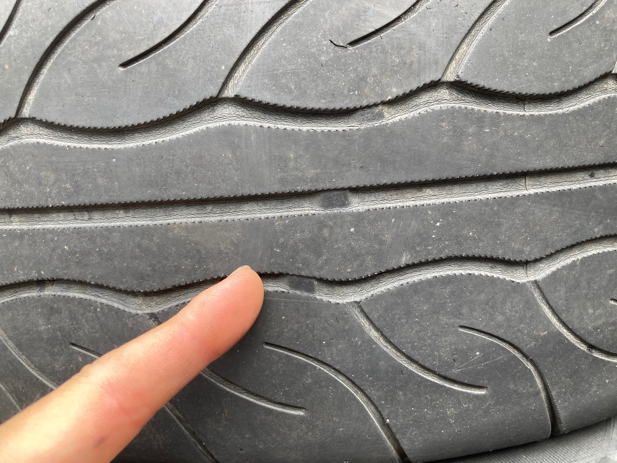 タイヤには様々な減り方やトラブルがありますが、↓のように摩耗して残り溝が減り、交換時期を迎える場合や・・・