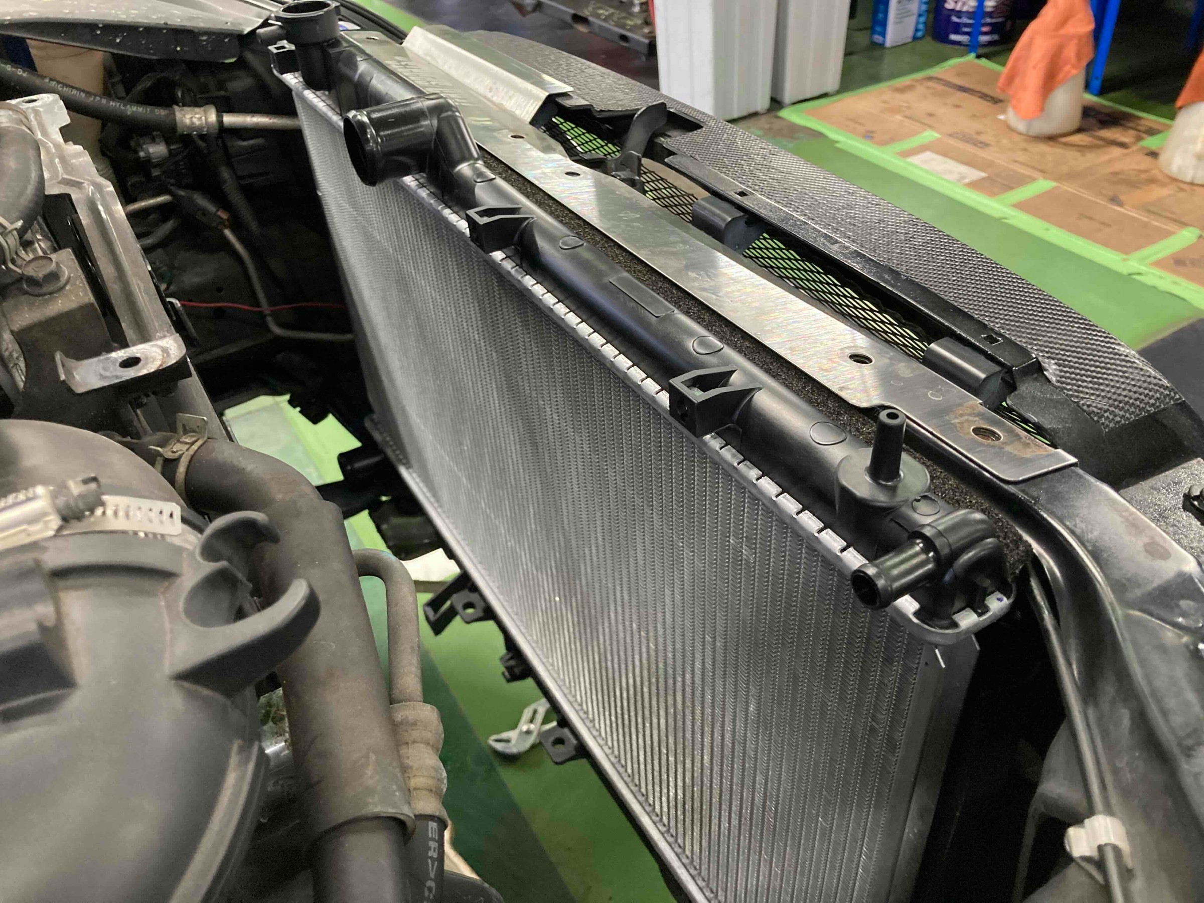 これは年数・走行距離を重ねるとよくあるトラブル。という事で、ラジエーター本体をそっくり新品に交換していきます。