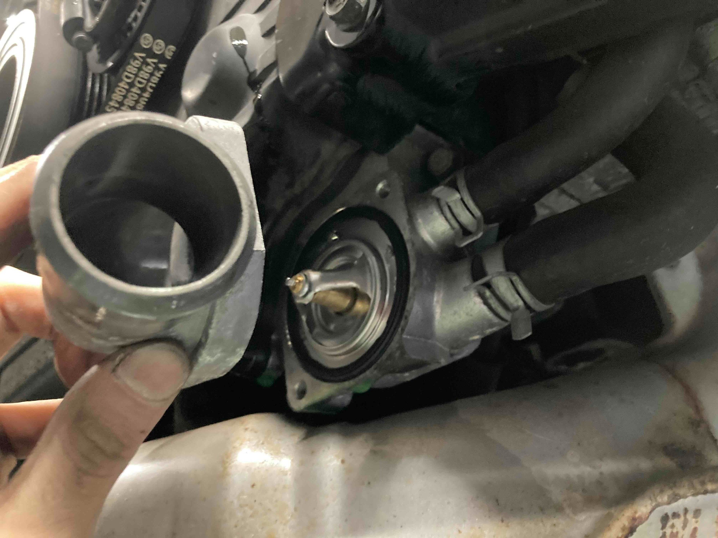 さらに予防整備として、サーモスタットと各種ホースも新しく交換しました↓