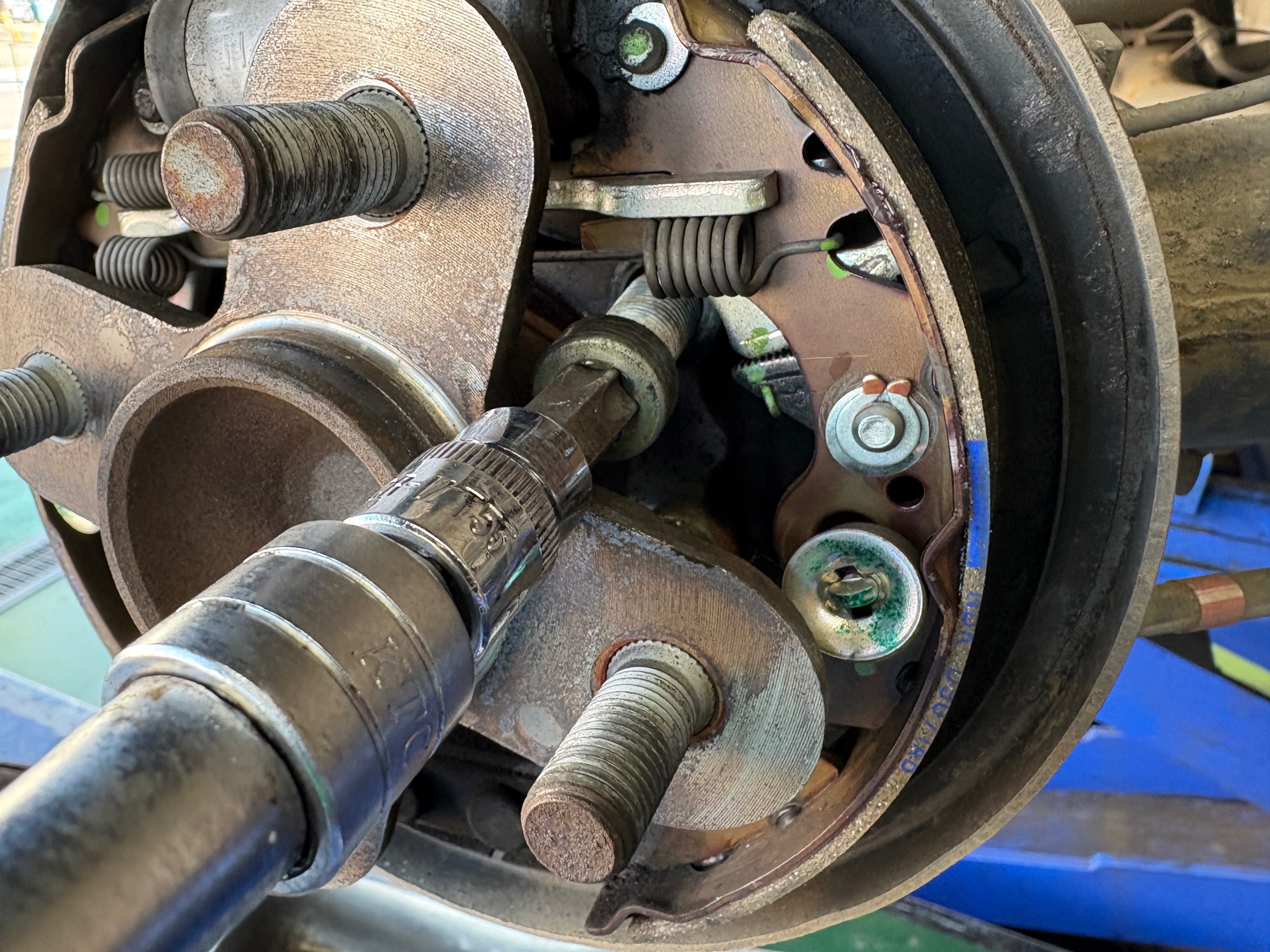 ブレーキシューなどを分解することなく、ボルトが取り外せます。
