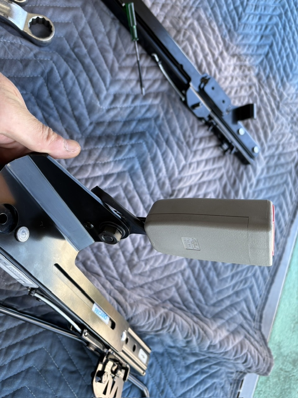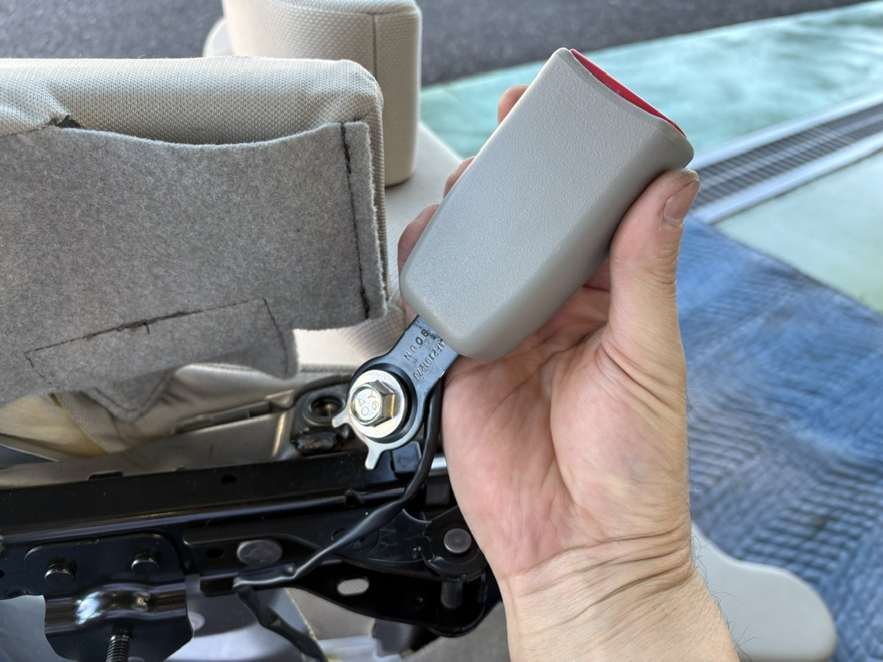 シートを外したらシートベルトのバックルを移植する為純正を取り外します!