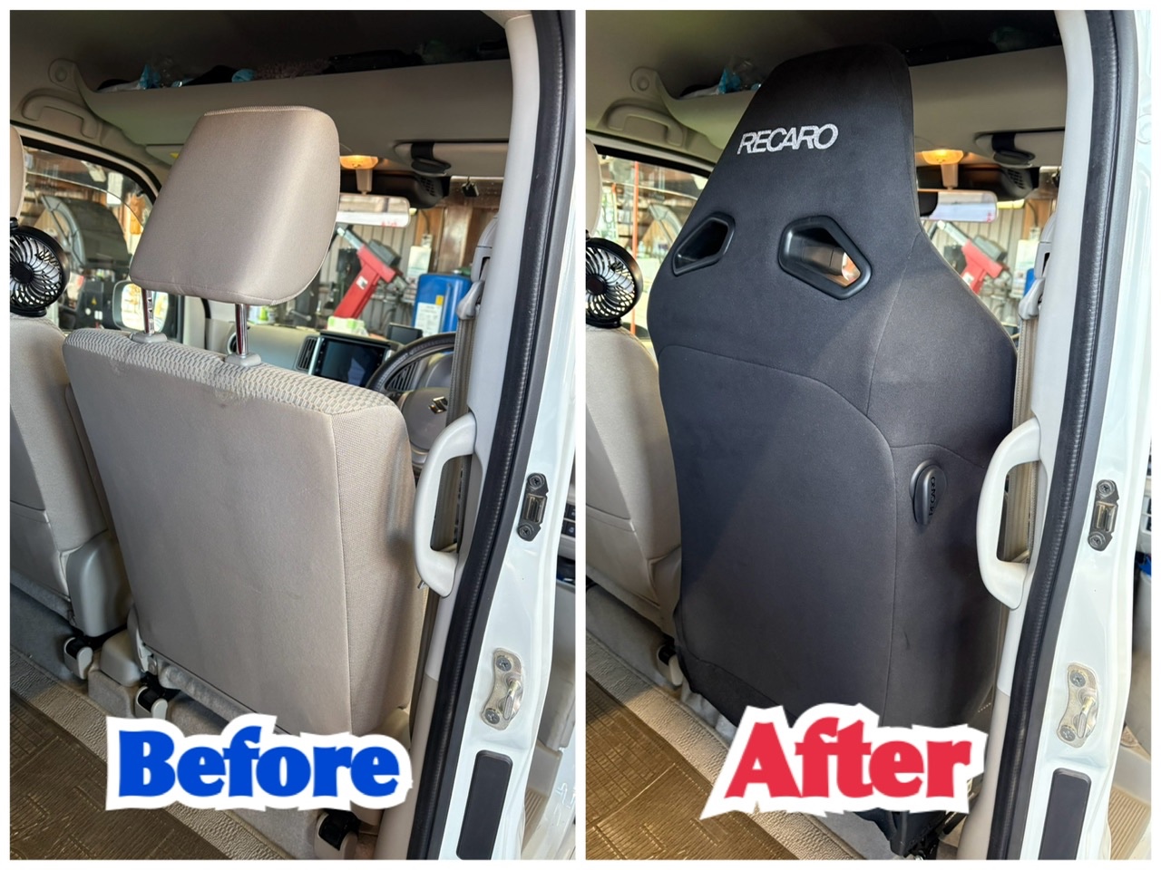 今回はヒートシート付きなので配線を加工し、RECAROシートを取り付ければ完成です!