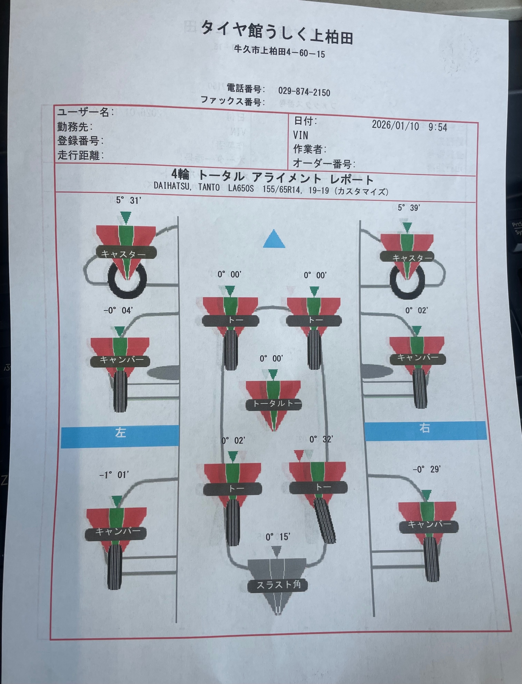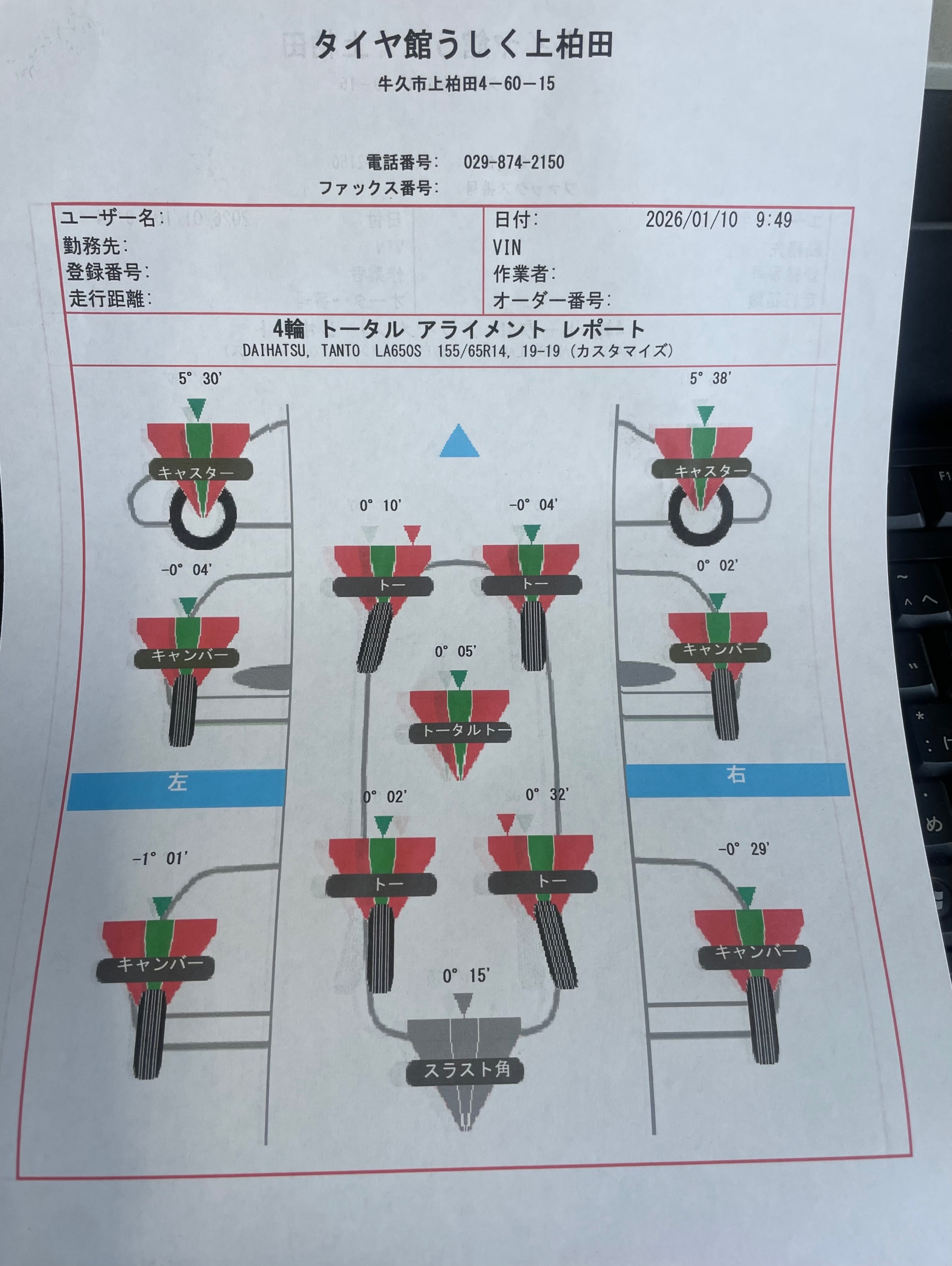 【ダイハツ】タントアライメント調整!