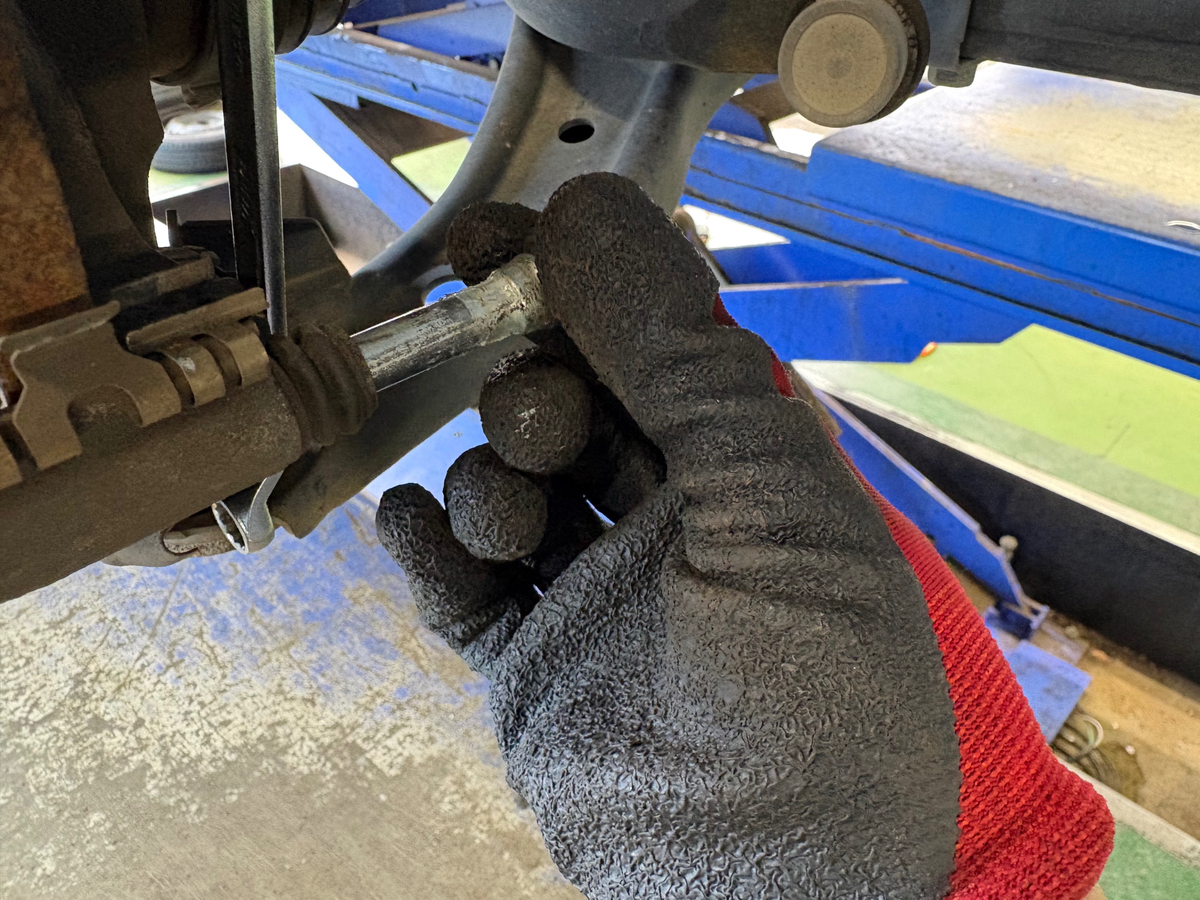 ブレーキキャリパー分解時には、キャリパースライドピンも取り外して固着等が無いかを確認。