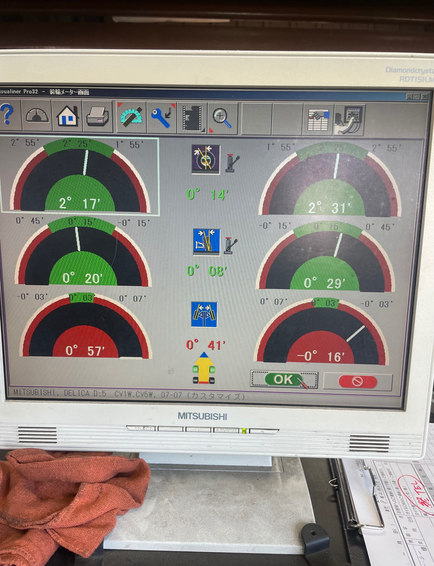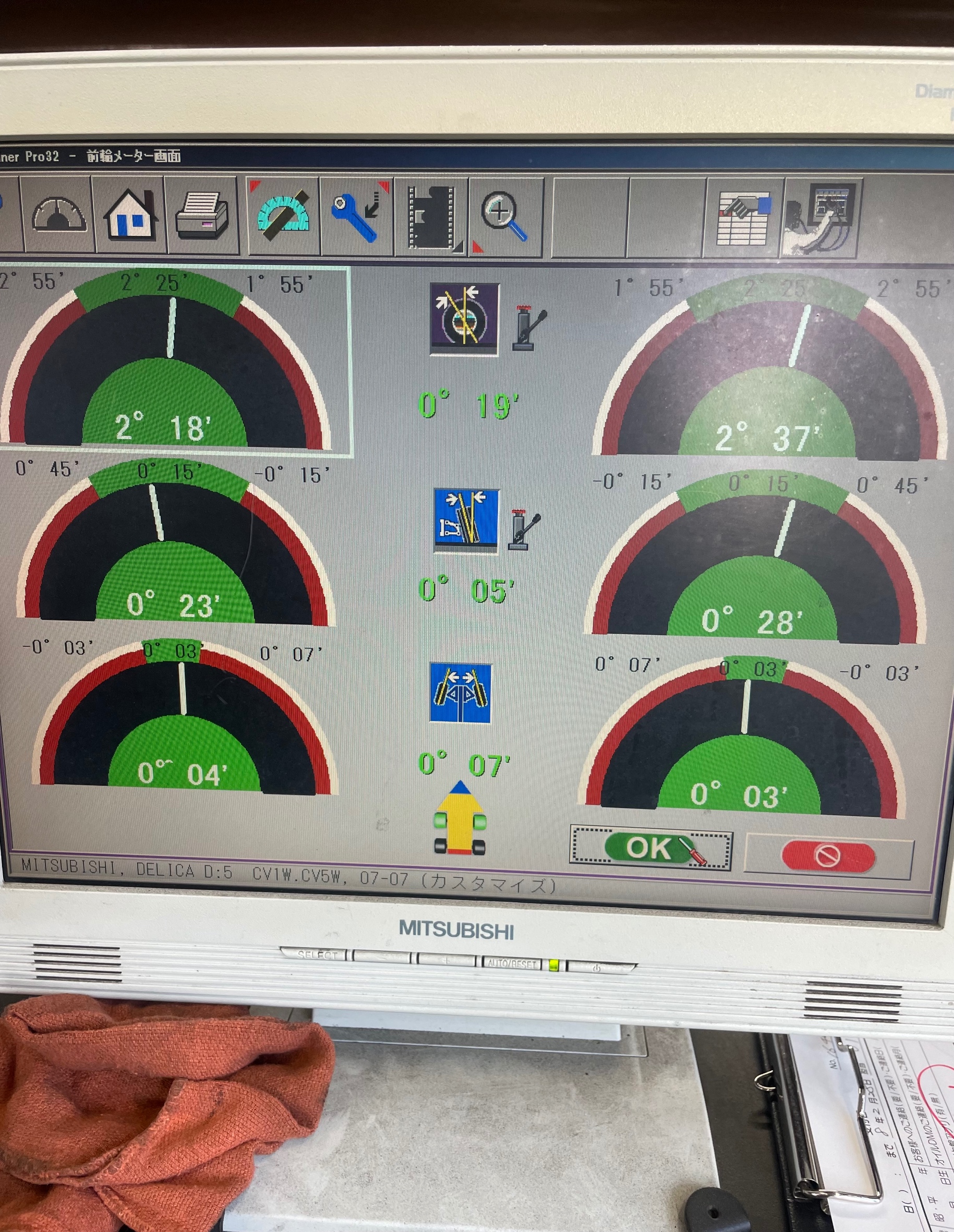 本日ご紹介するのは三菱 デリカのアライメント調整です!