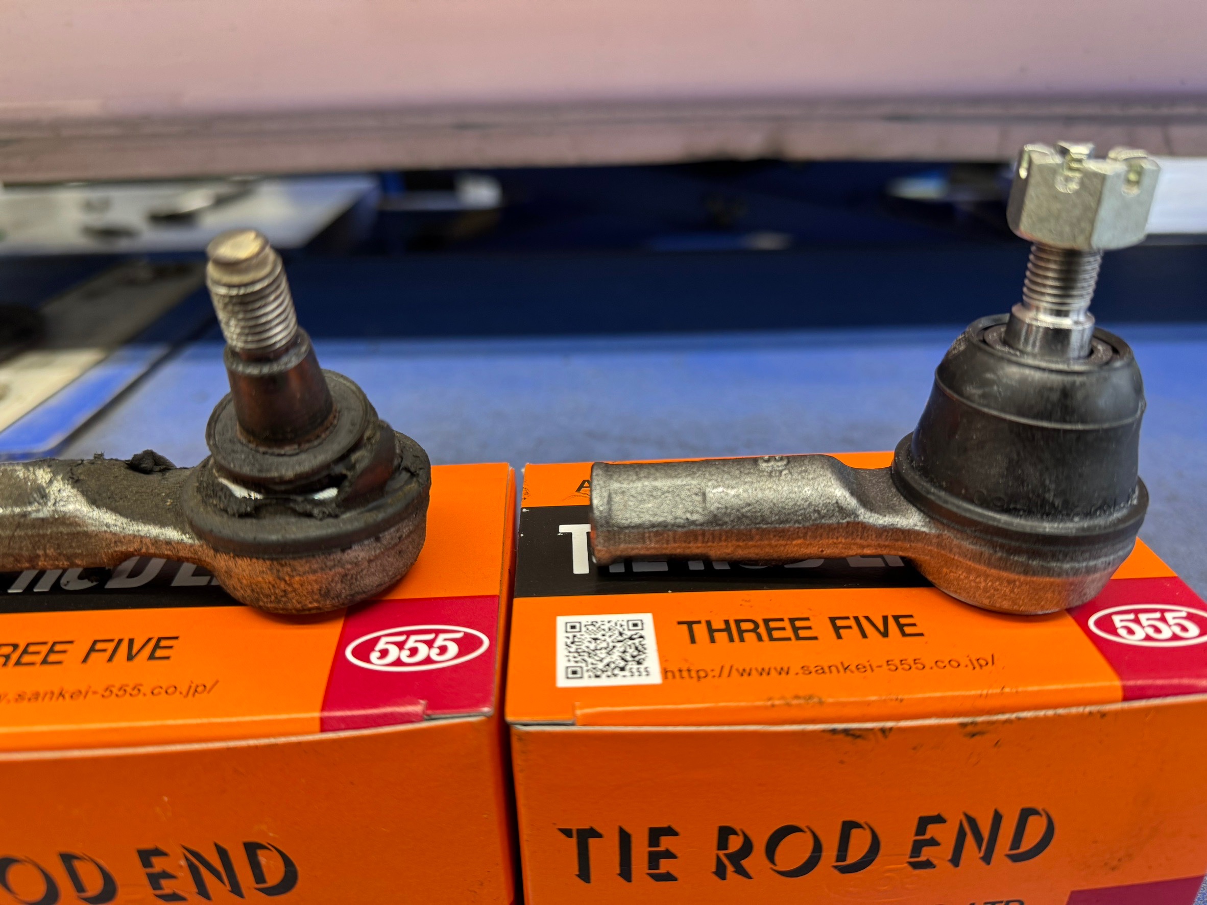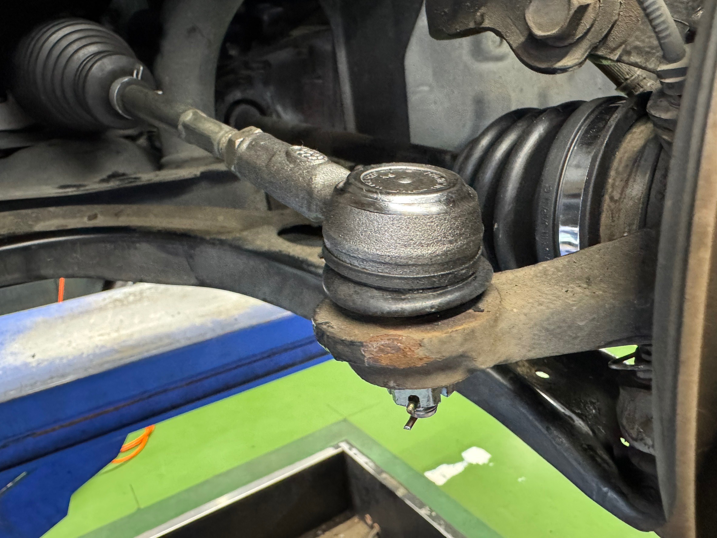 タイロットエンドはこんな感じになっております。今回はブーツが切れていてグリスが全てなくなっていて中が削れている可能性があるので交換させていただきました。