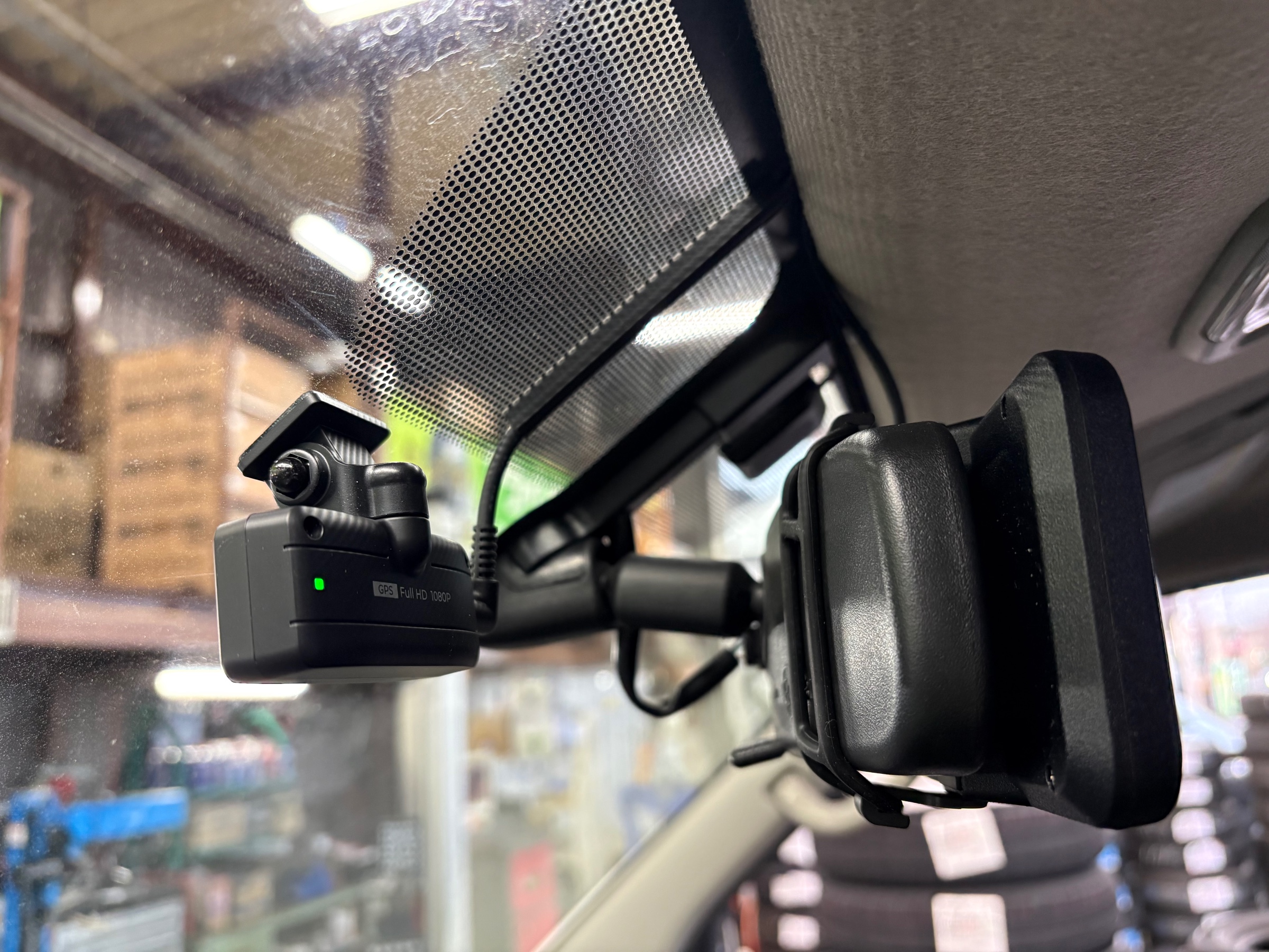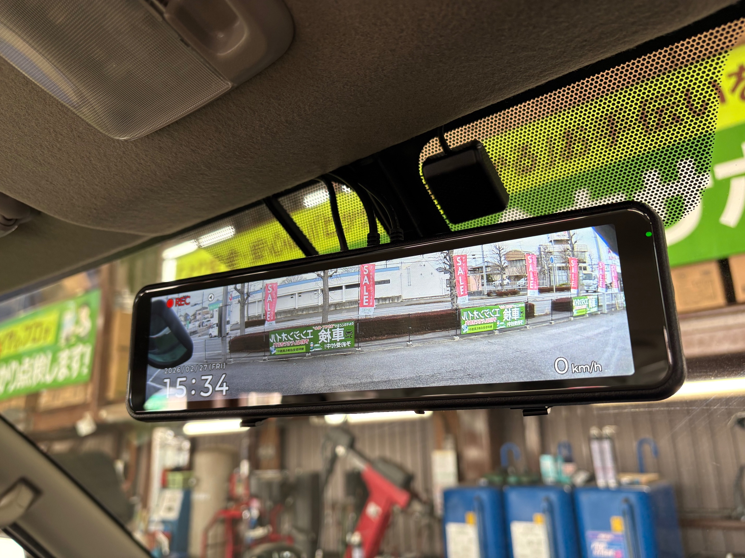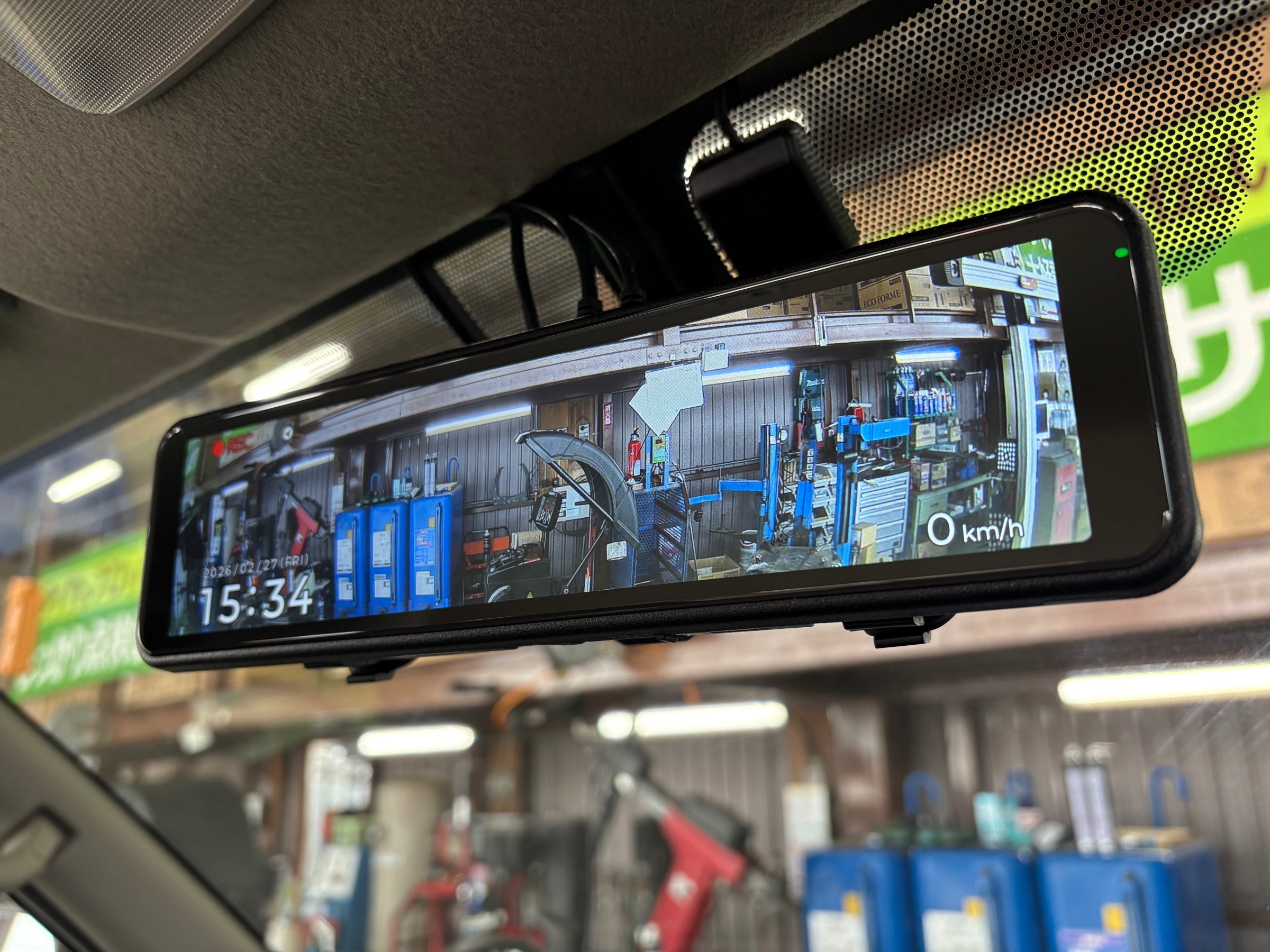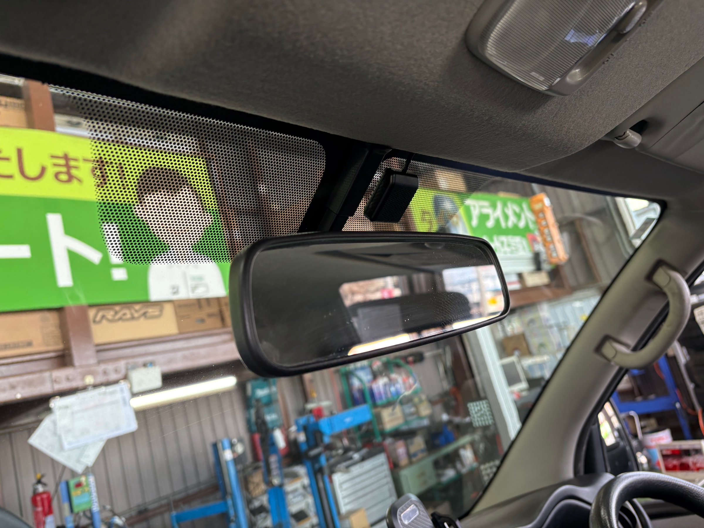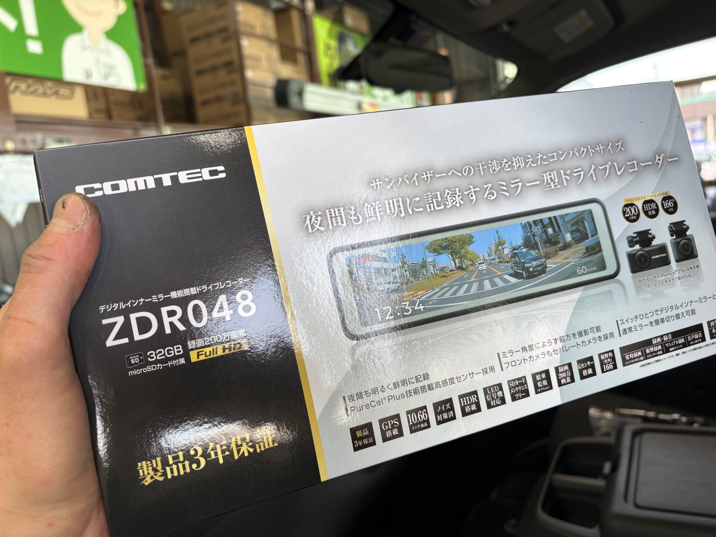 まずはデジタルルームミラーから。【COMTEC ZDR048】をお取り付けしました。