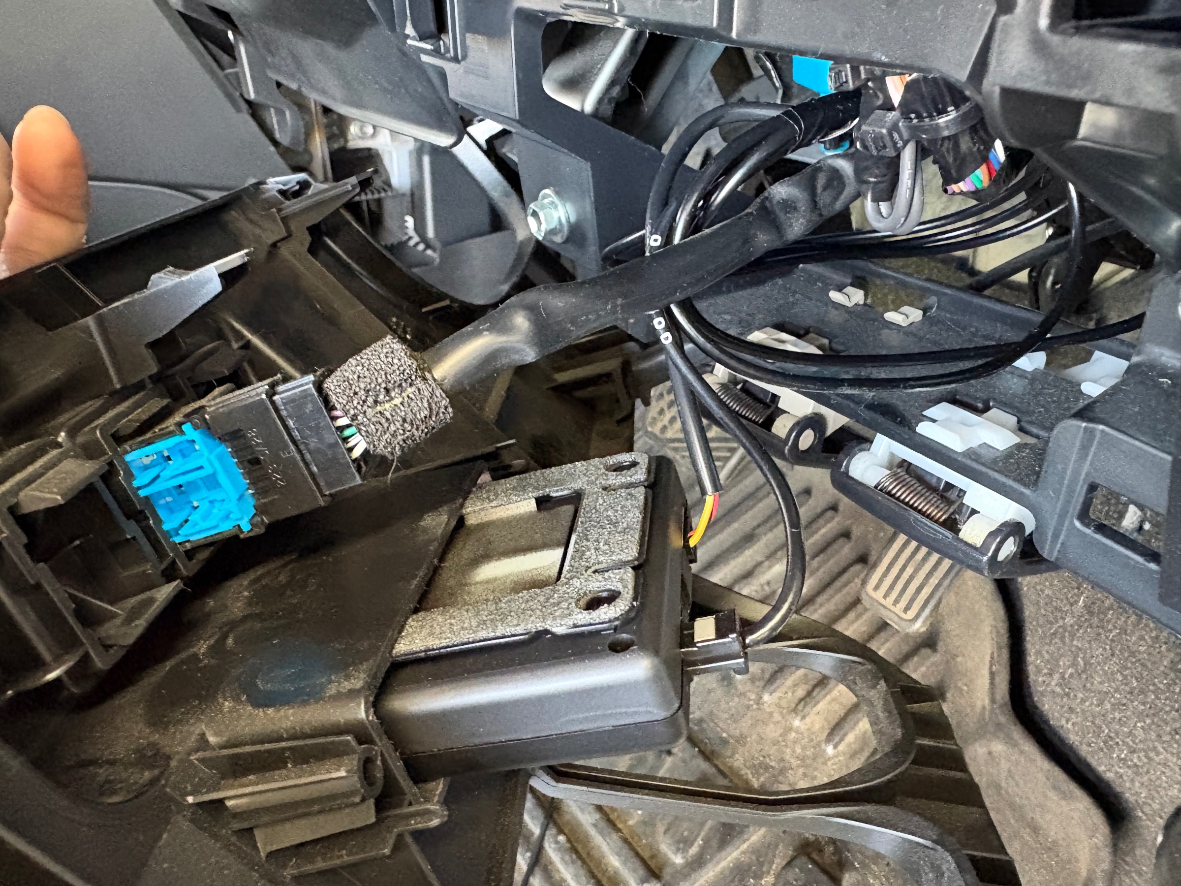 取り付け方は、通常のETCと全く同じ。本体は、ハンドル右下にあるこのスペースを利用して取り付けます。
