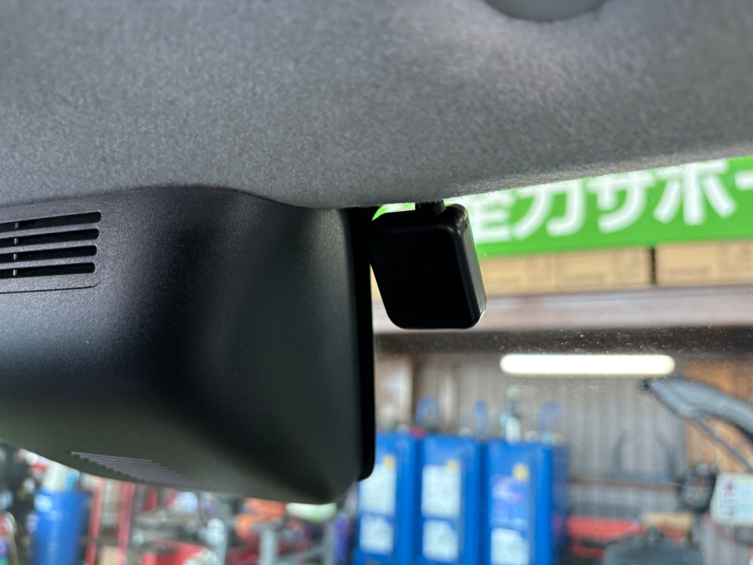 アンテナユニットはフロントウィンドウのここに設置↓