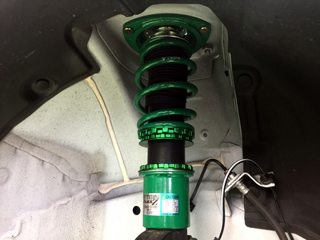 FLEX zは、メーカー自身驚異のロープライスを実現したというだけあって、性能と価格のバランスの非常に良い車高調です。減衰力は前後16段階の調整機構を持ち、ボディとの接続部であるアッパーマウントも専用品を装着。ショックアブソーバーはドレスアップしてホイール&タイヤのインチアップを想定した作りになっており、走行時の感触もあまりゴツゴツ感がなく走れるストリート用車高調としてとてもオススメな一品です。一方のEDFC ACTIVEプロはショックアブソーバに取付けられたモーターを車内からコントロールすることで、運転席に座ったまま減衰力調整を可能とした電動減衰力コントローラーです。コントローラーに内蔵されたGセンサーにより、走行中の加減速Gに応じた減衰力の自動調整を実現。さらに、別売りのGPSキットを追加することで車速に応じた減衰力の自動調整も可能とします。