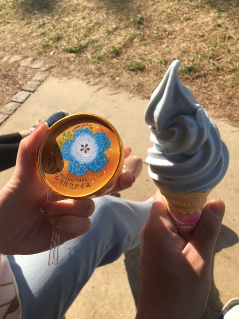 園内ではネモフィ饅頭やネモフィラソフトクリーム(ラムネ味)が販売されていました