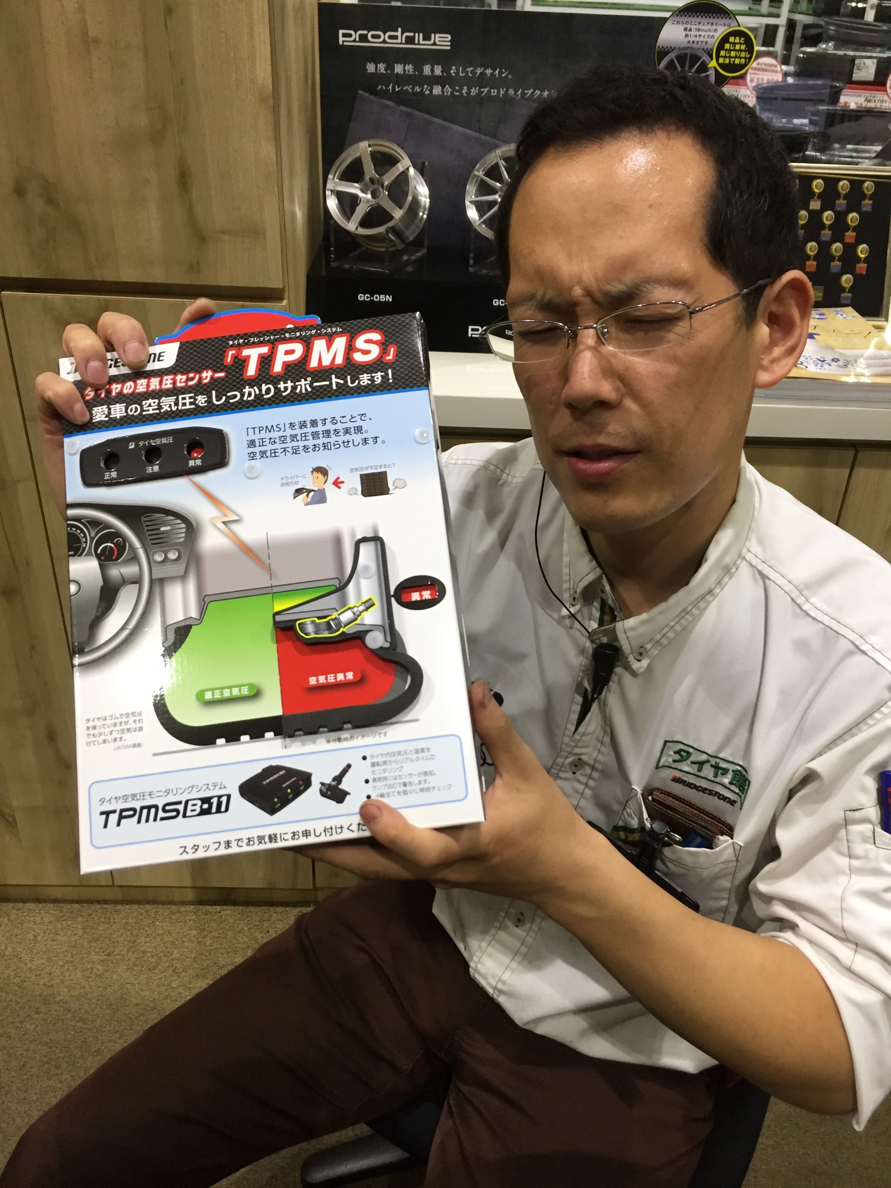 ちなみに私が手にしているのは、TPMSの作動状況を分かりやすく体感できるNEWツール!!本当にわかりやすいので、皆さんぜひ押してみてください!