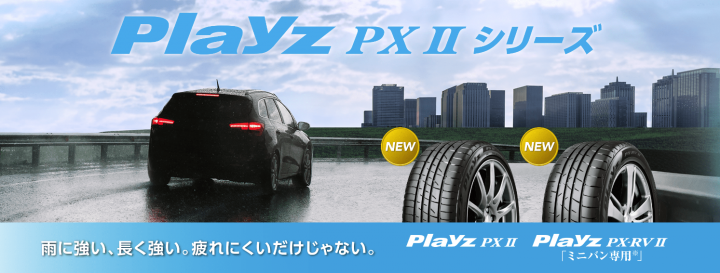 ブリヂストンの提案する「Playz PXⅡシリーズ」はタイヤの側面を左右非対称形状とすることで路面とタイヤの接地感を最適化。