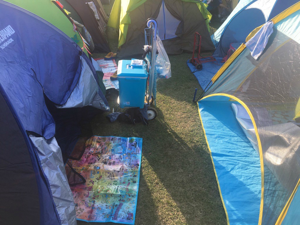 この日は現地で集合した友人グループや知り合いを集めて小さなテント村みたいにして拠点を確保していました。