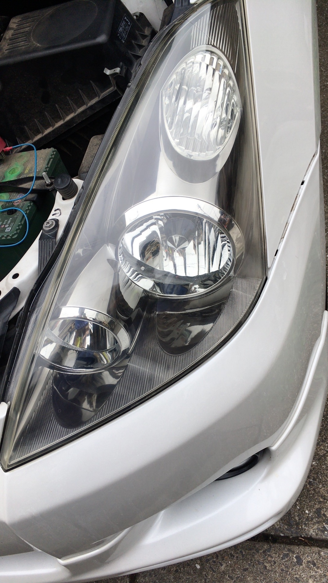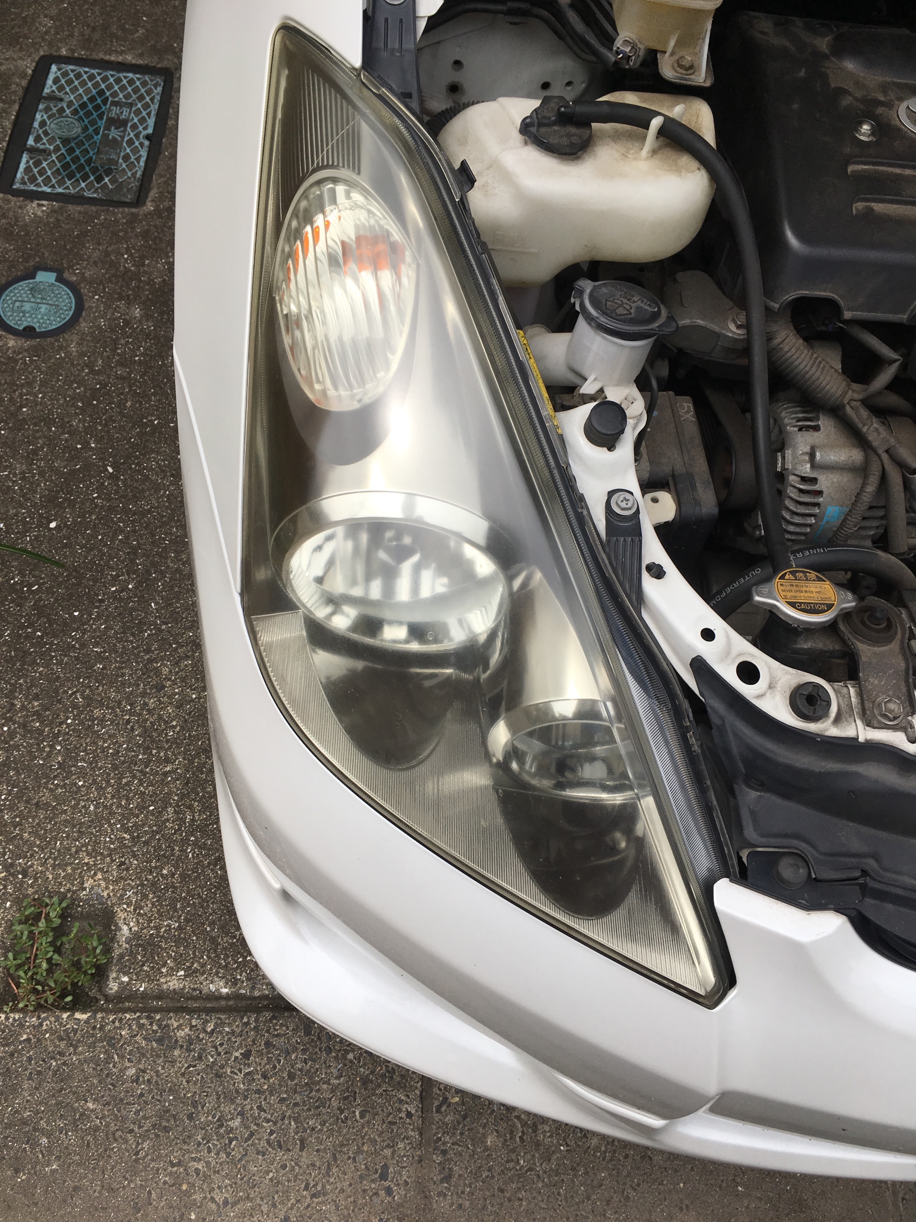 これが磨く前の右ヘッドライトです。