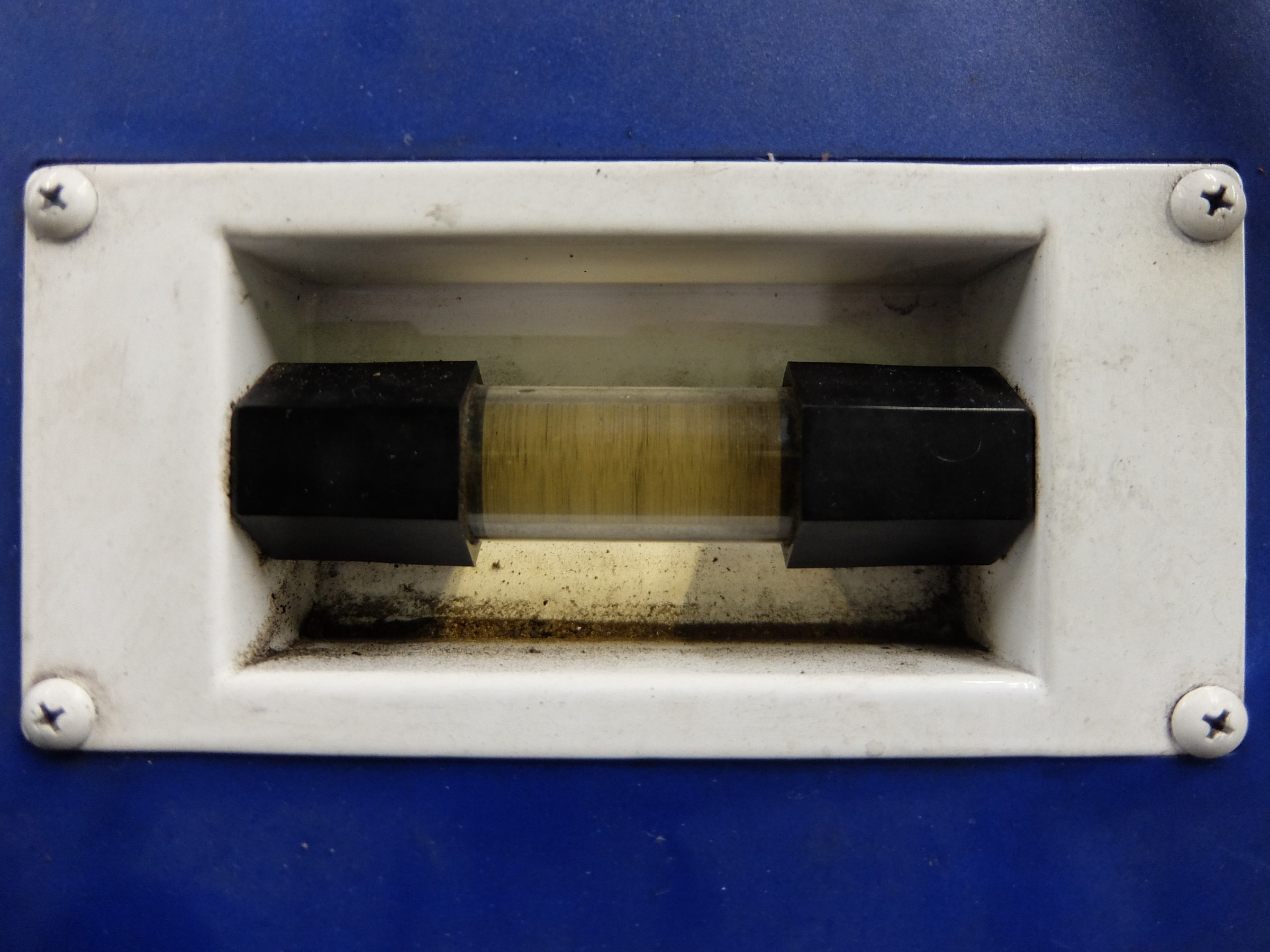 先程のゲージを抜き、ホースをつないで汚れを測定してみます。