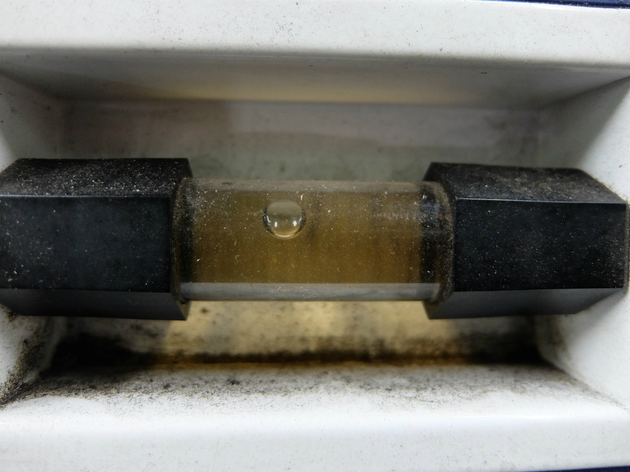 目で見てわかるものではありませんが、色は黒くなり、機械による診断でも交換時期を迎え緑・黄・赤のうち一番汚れが酷い時に表示される赤での診断となりました。