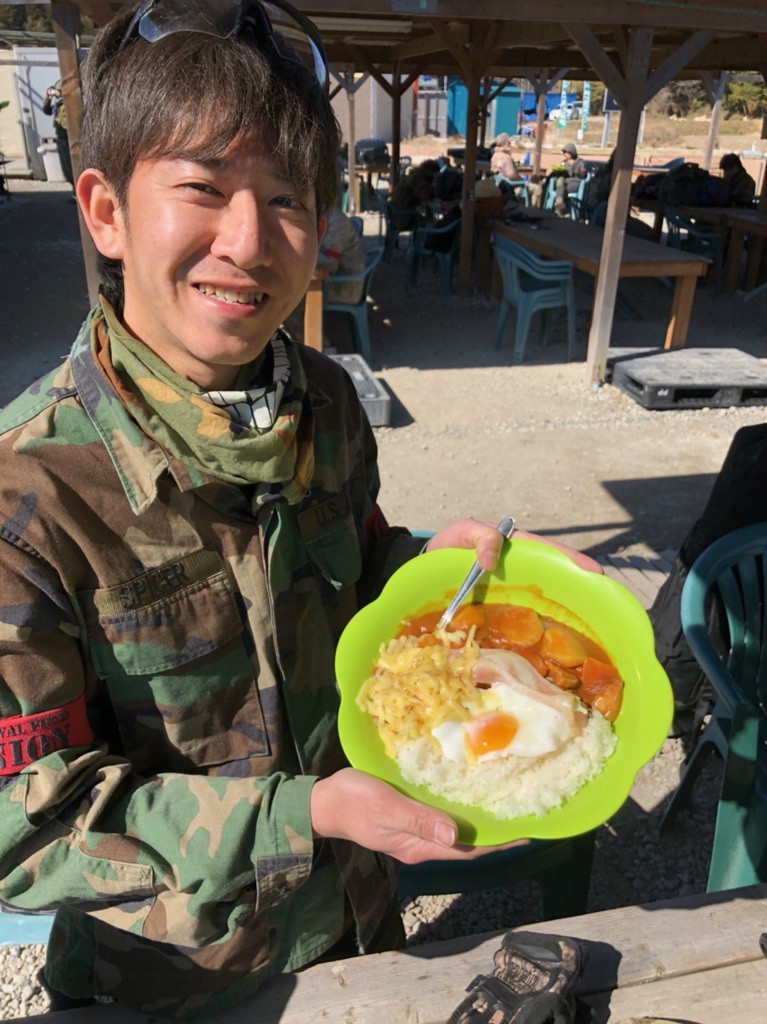 お昼には定番のカレーをいただきました、今回は炙りチーズや目玉焼き、ベーコン等トッピングが豊富ですごく美味しかったです!