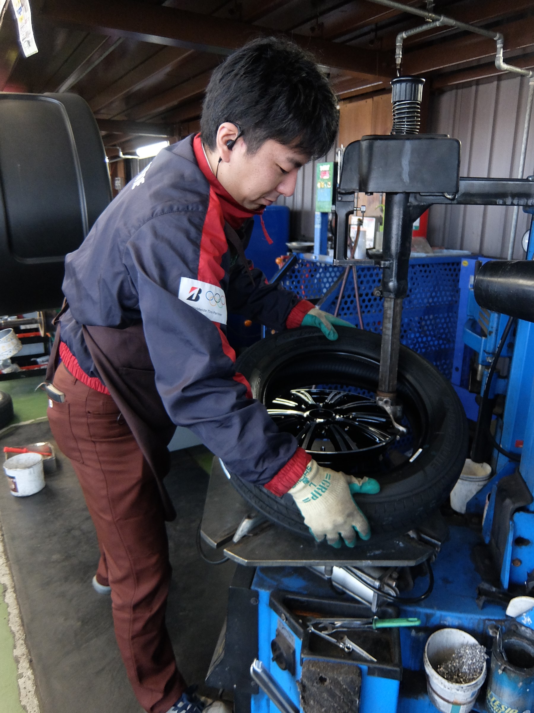 本日は、ご予約頂いたタイヤのセット組みの風景です。