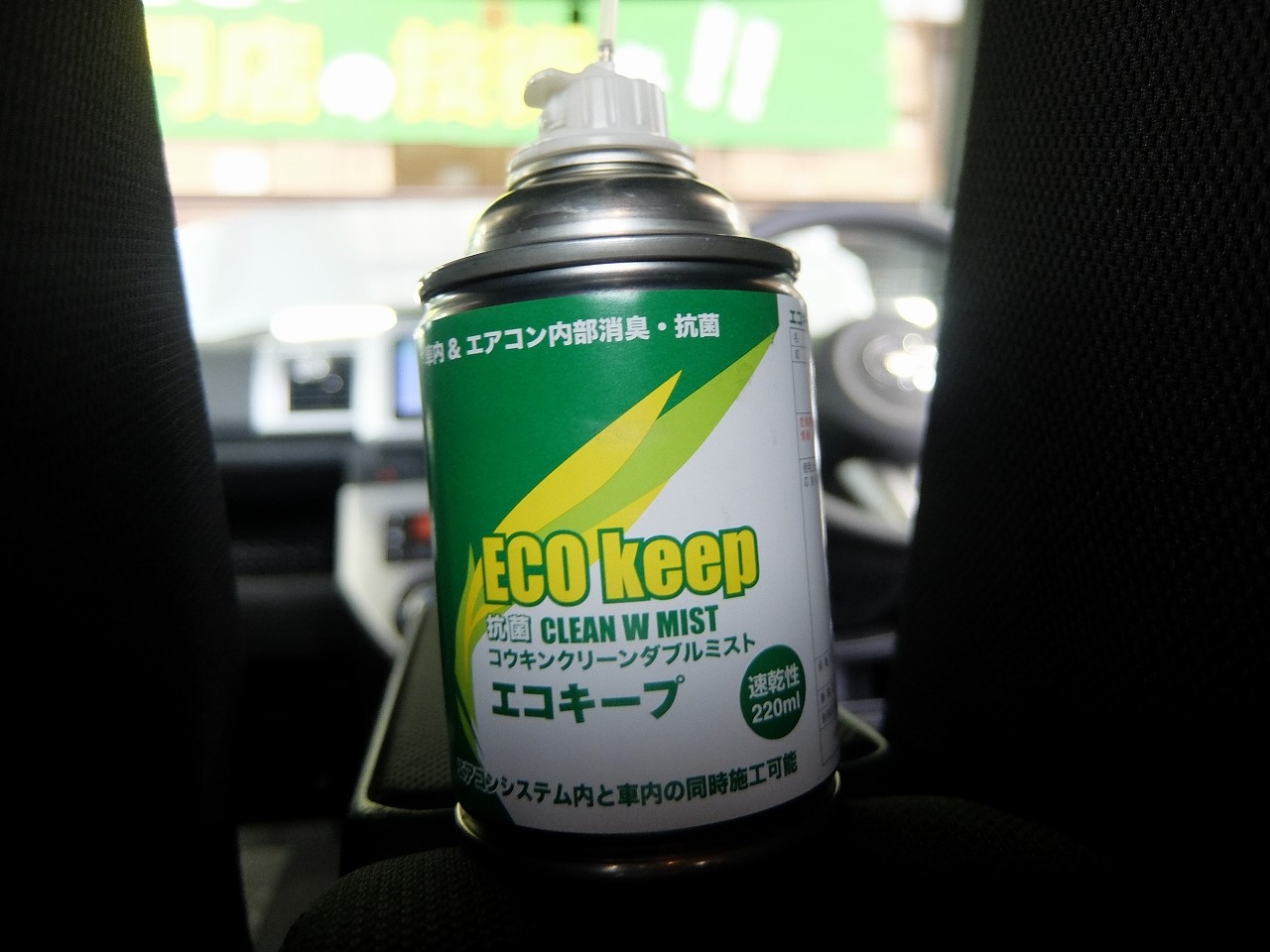 そのままエコキープを開封し、缶の中に入っている消臭・殺菌・抗菌成分がミスト状となり車内とエアコンシステムを循環しつつ車内環境を綺麗にしてくれるんです!!