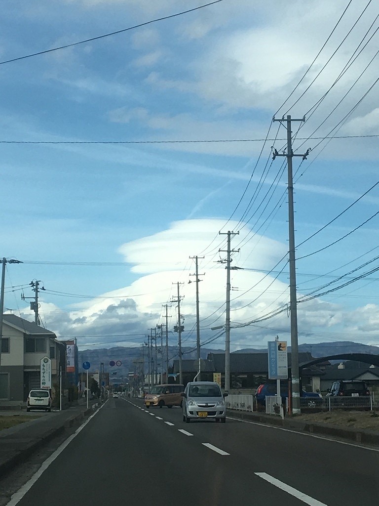 周囲を山に囲まれた地形の為か、まだまだ山陰には雪も残っており、山上に更に山が連なっているかのようなとんでもない雲を発見致しました笑