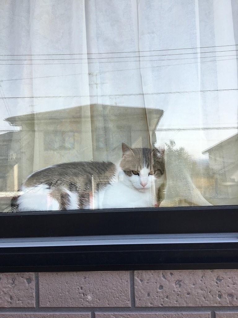 なかなか正面から写真を撮らせてくれなかったんですが、外出する際に窓際にいたのをパシャリ☆