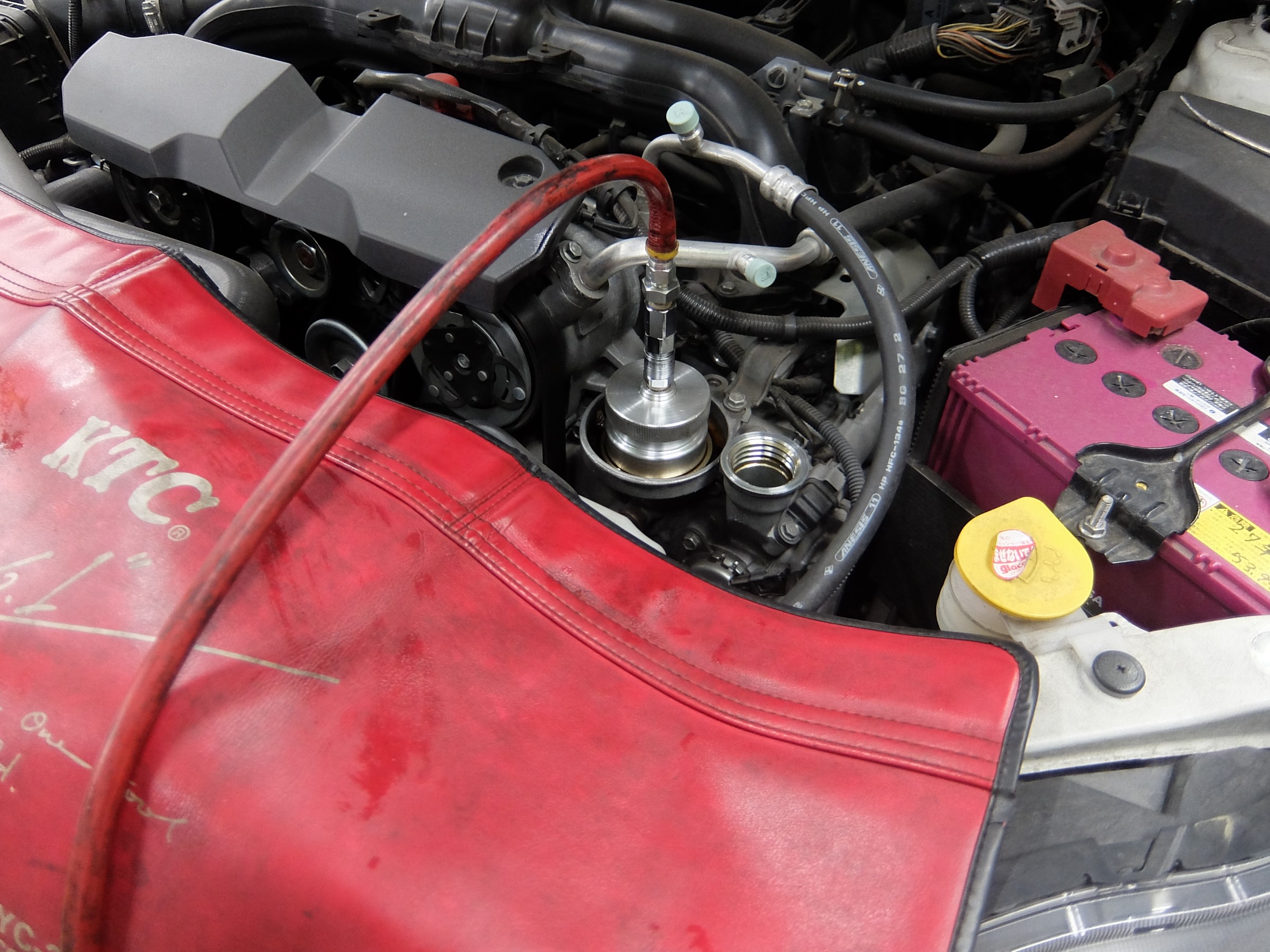 ドレンボルトとオイルフィルターを専用のホースでつなげて実施をします!
