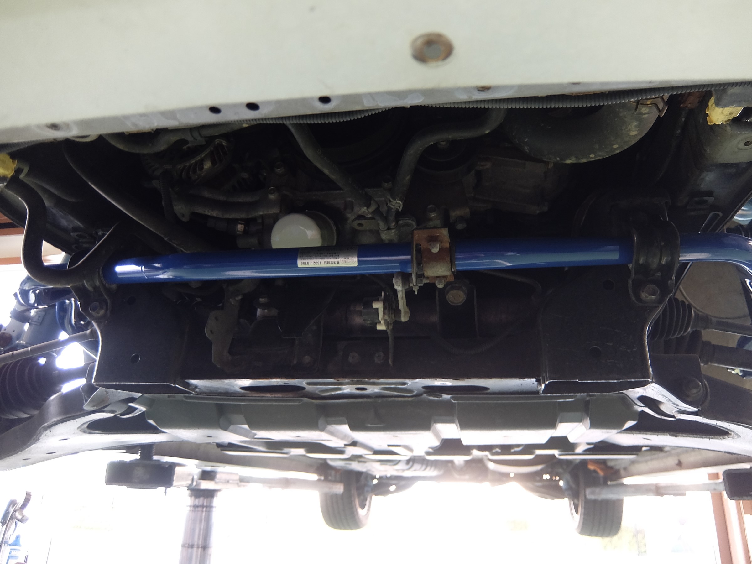 対策として、10万㌔も超えていたのでKYBのショックアブソーバとクスコのリアスタビライザー、そしてFストラットタワーバーの取付けを行いました。
