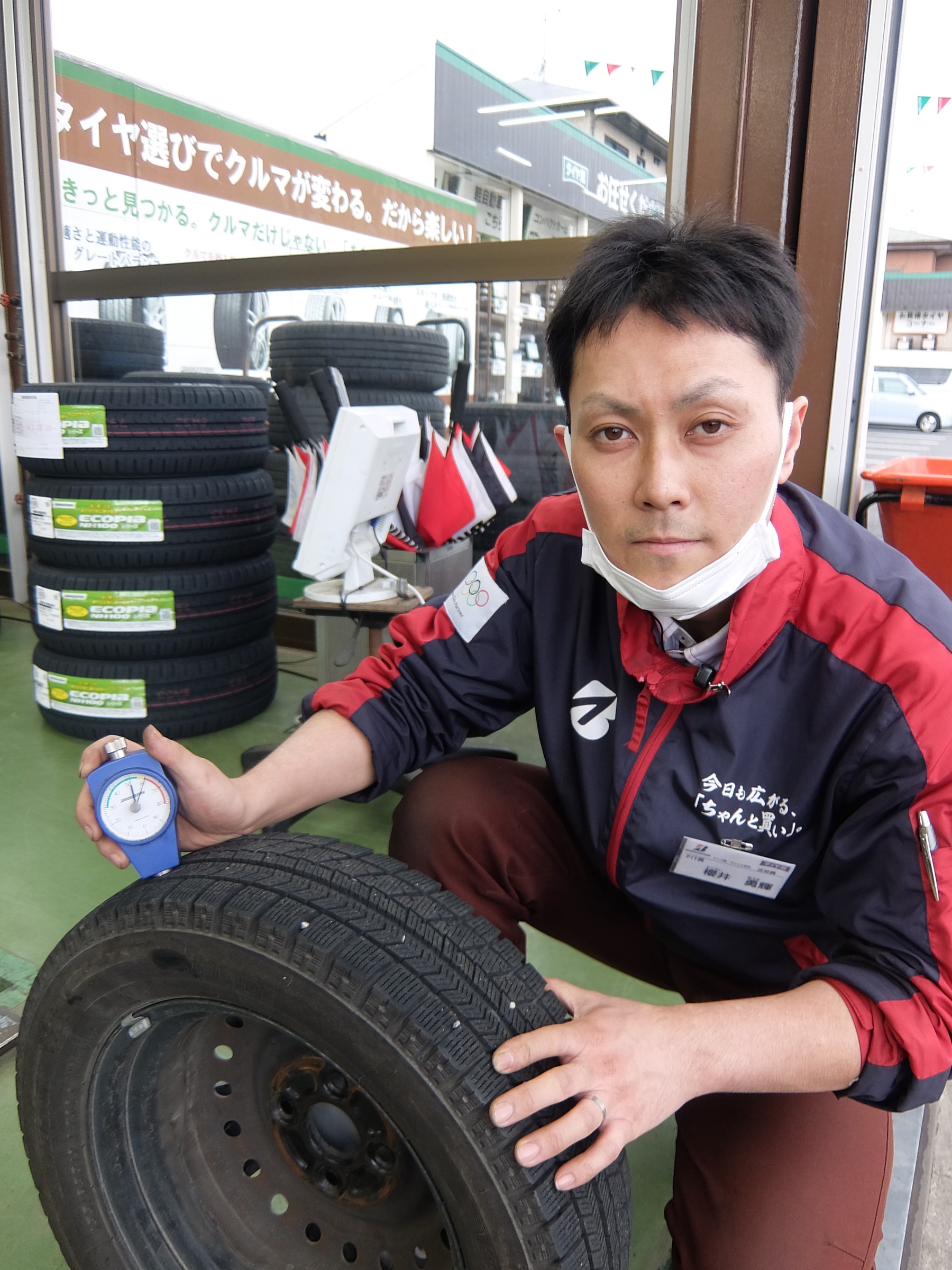当店では冬タイヤと夏タイヤの両方を、タイヤのプロスタッフが点検をして、それから装着しております(#^^#)