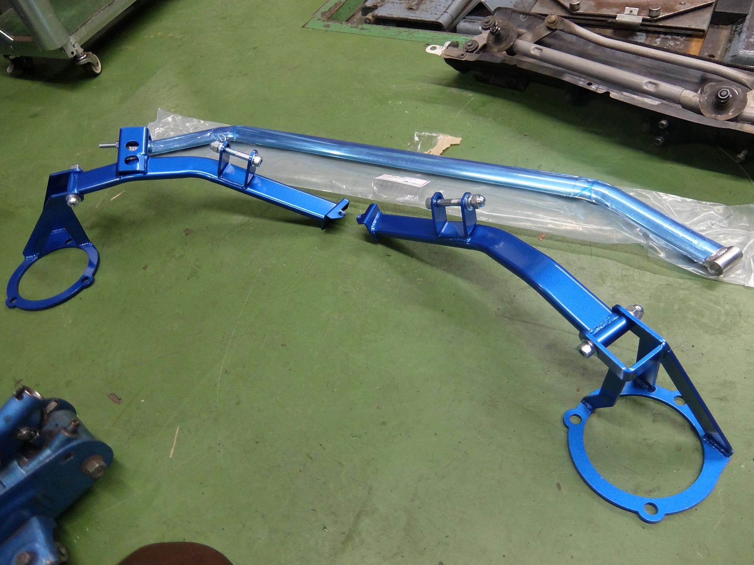 まずはエンジンルーム左右にサポートバーをそれぞれ装着します。