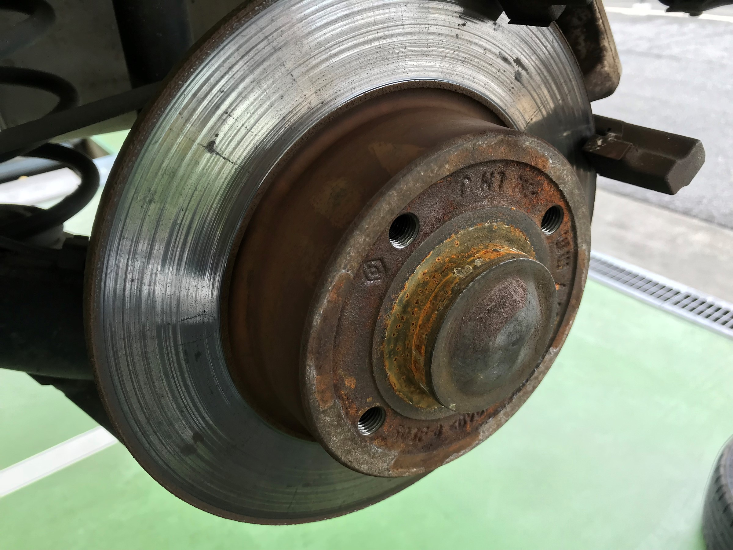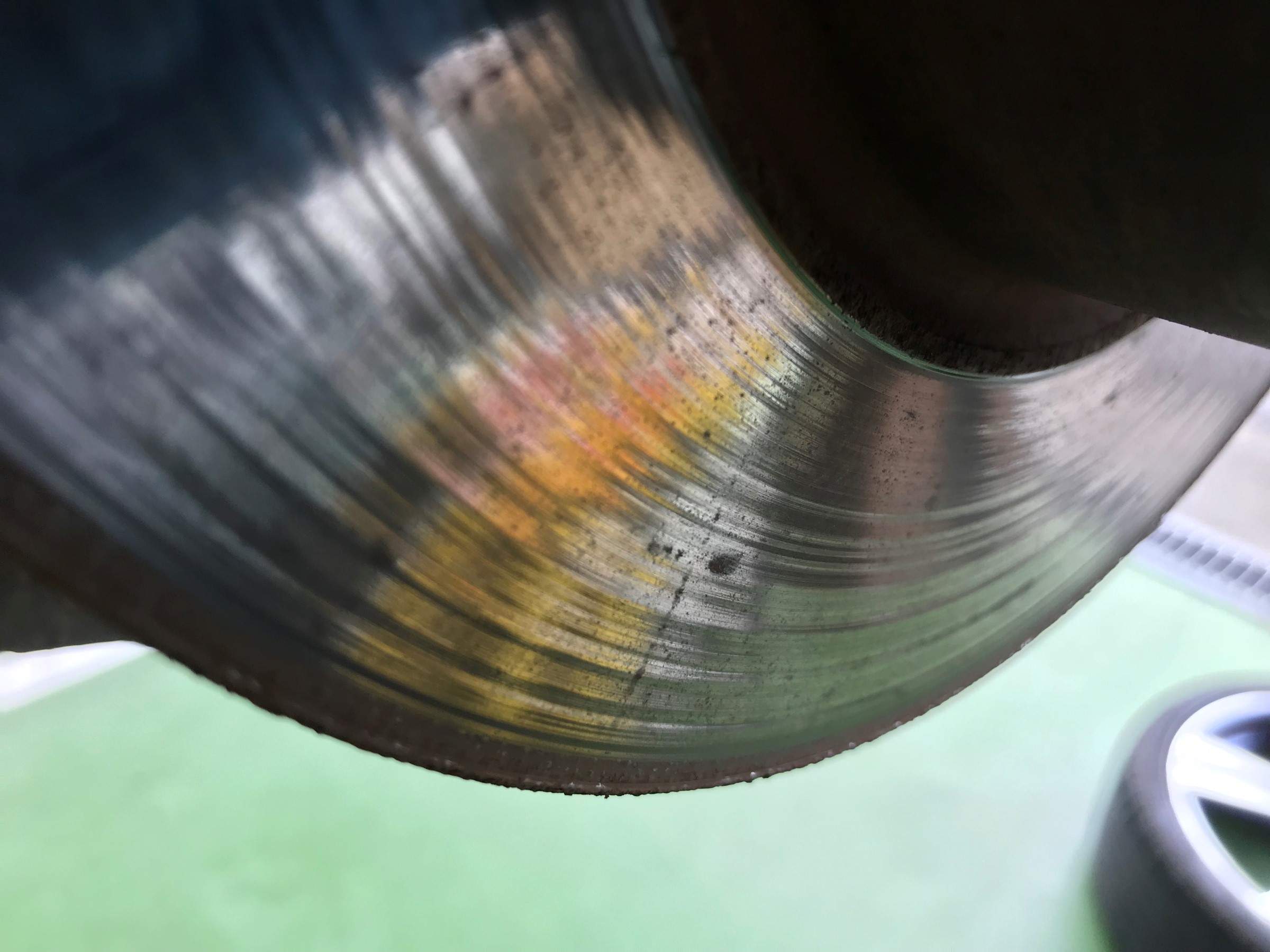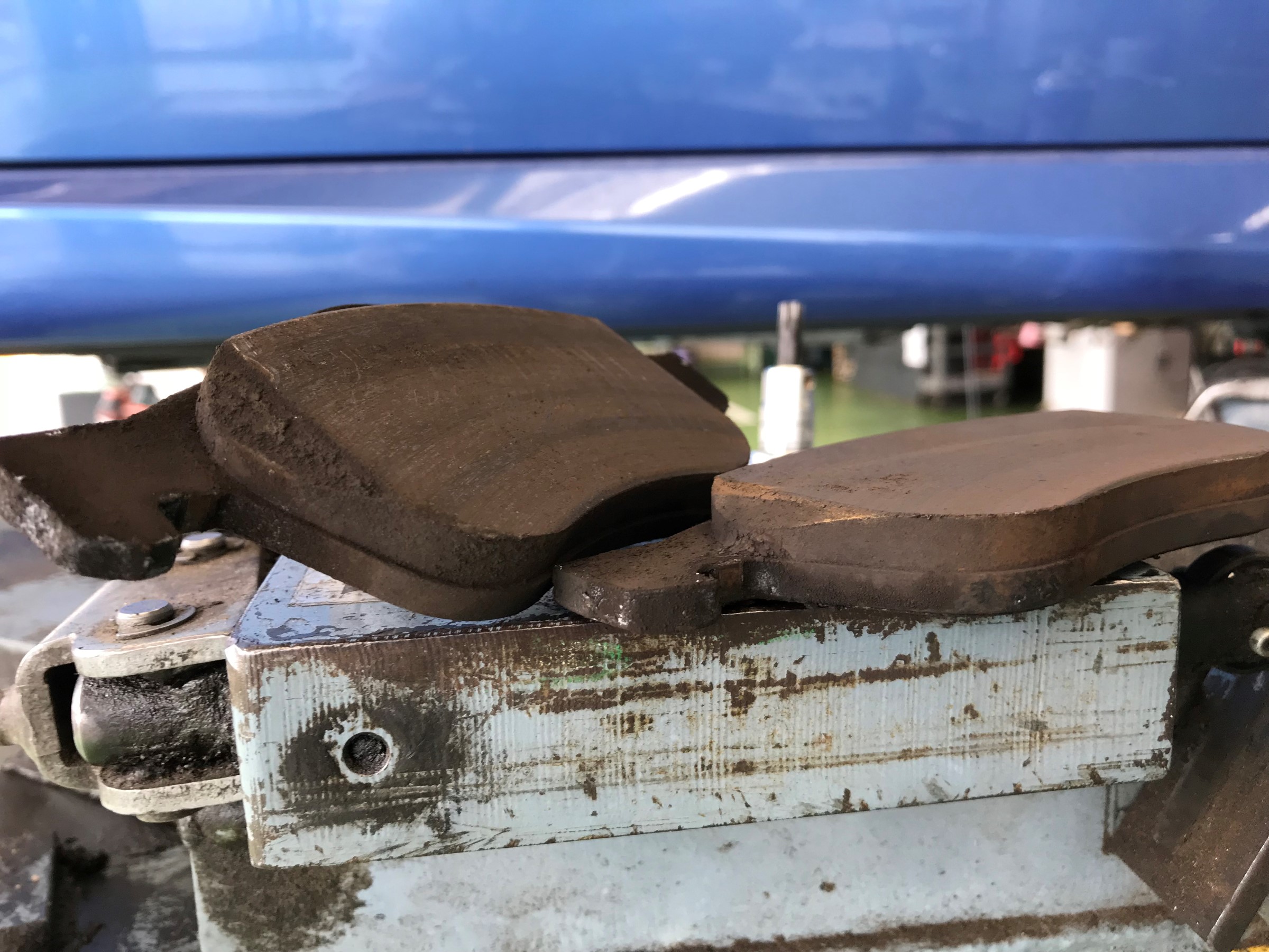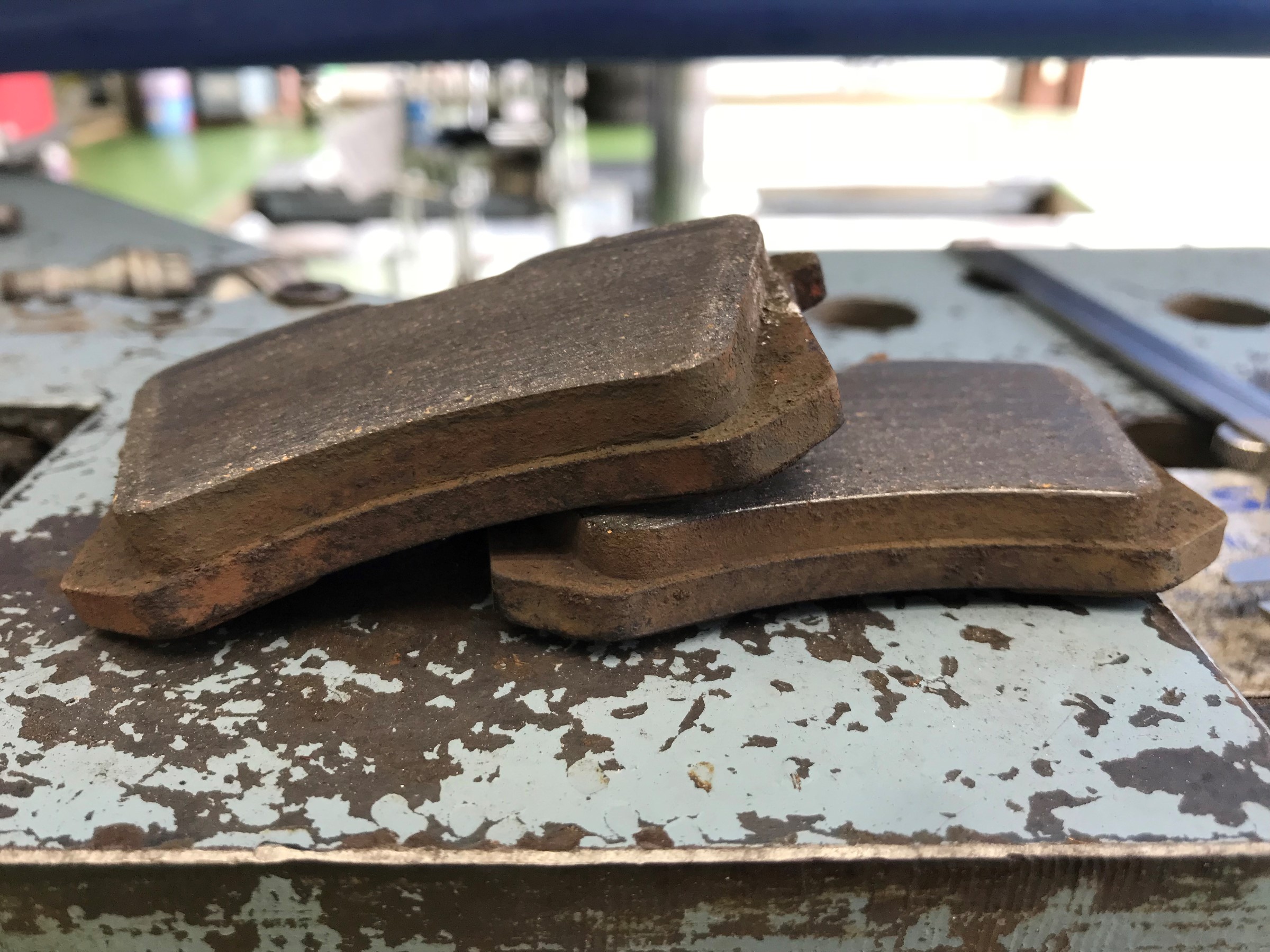 前後ともだいぶ摩耗しており、段差ができています。先にローターの交換を考えるべきですね。