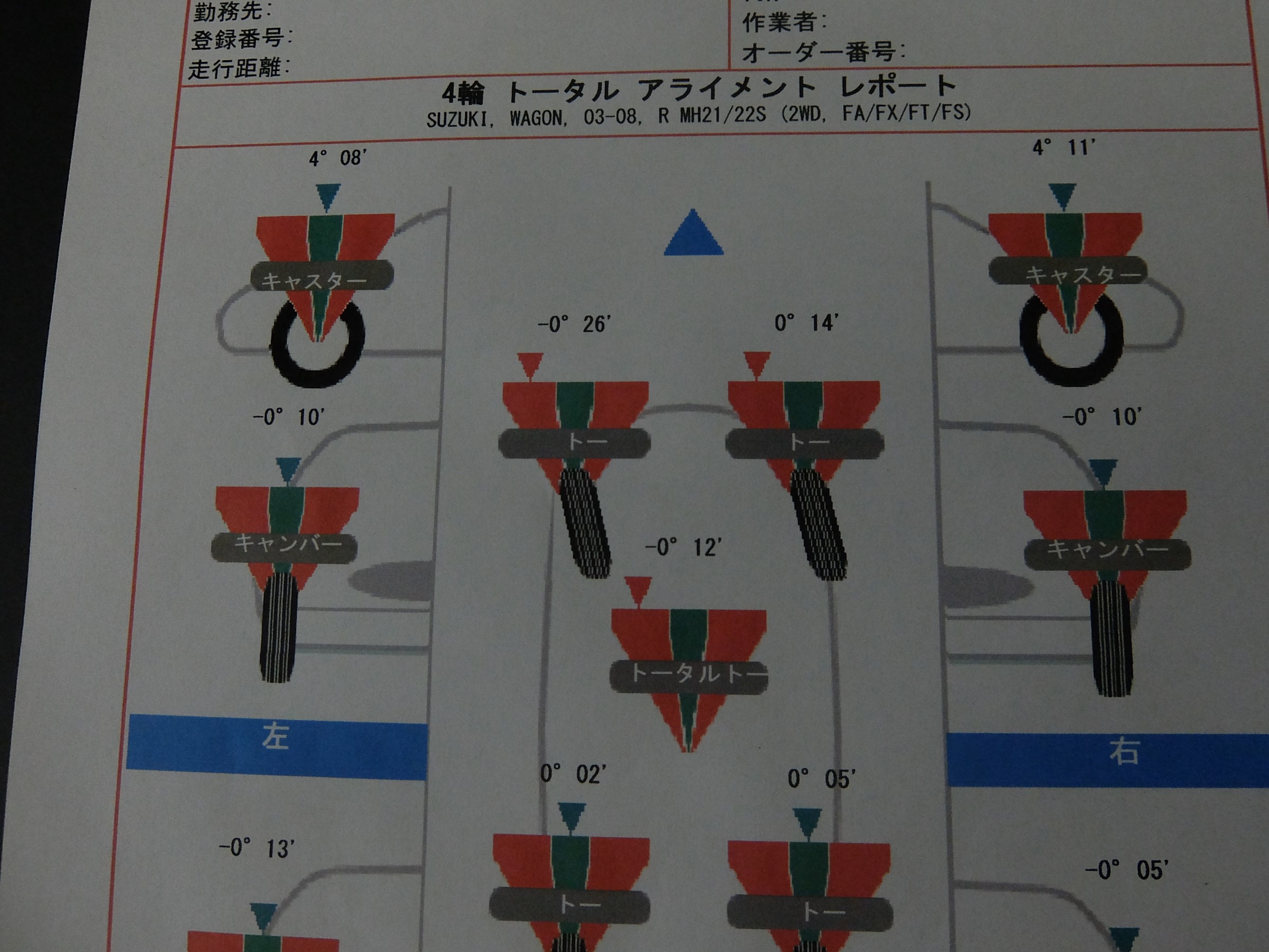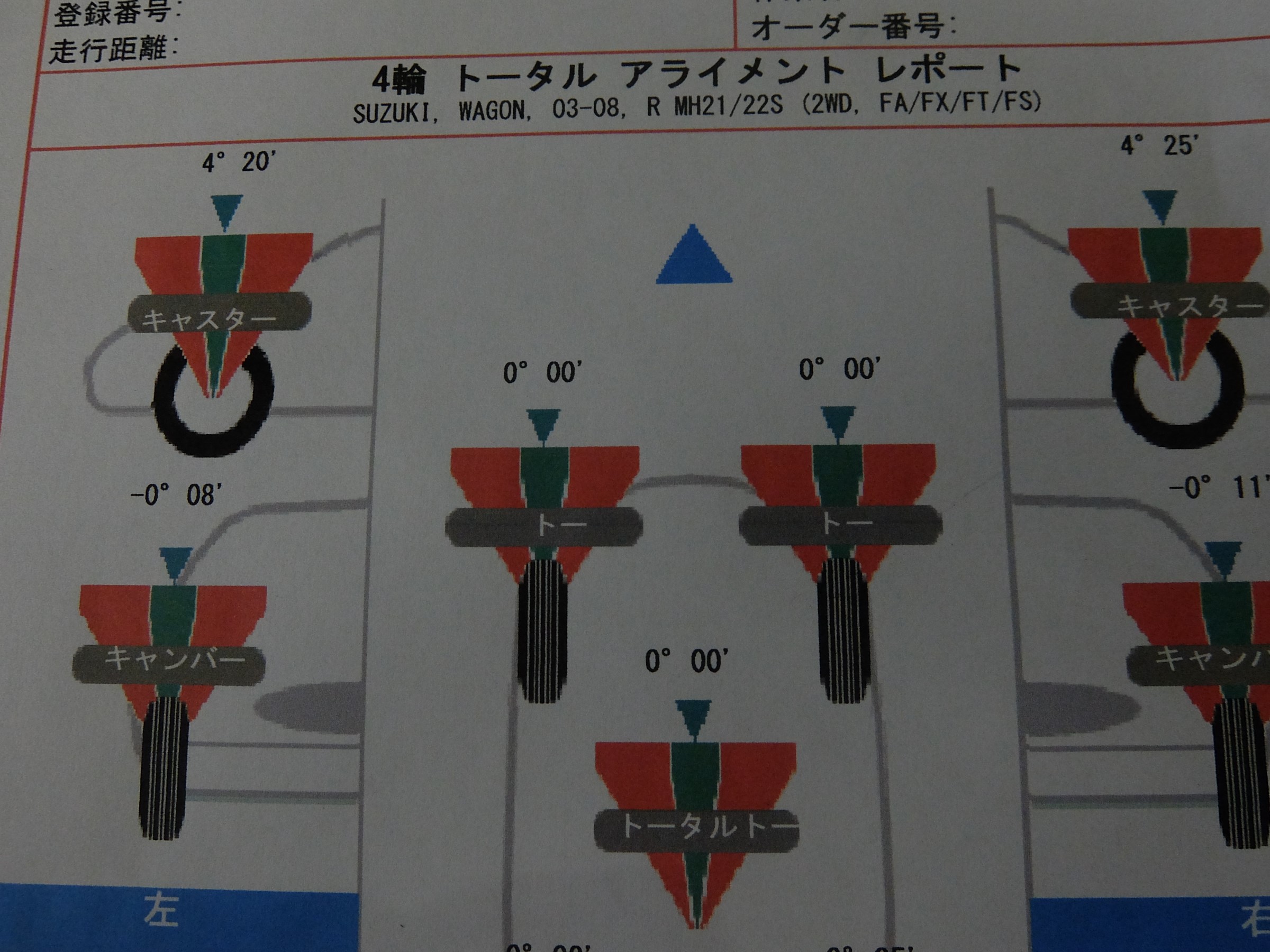 【スズキ・ワゴンR・MH21S】アライメント調整