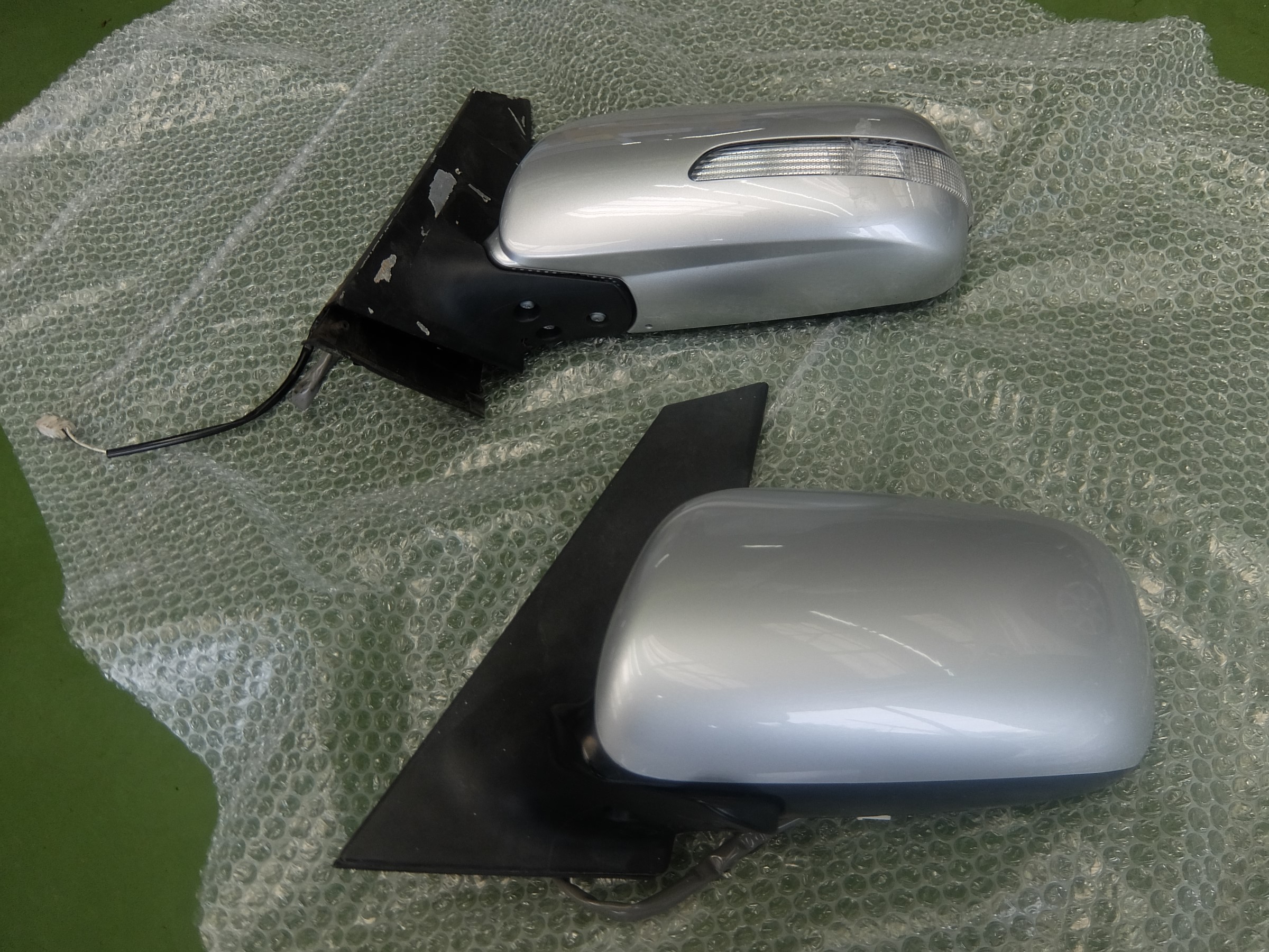 上が破損したミラーで、下が交換をする新しいミラー。