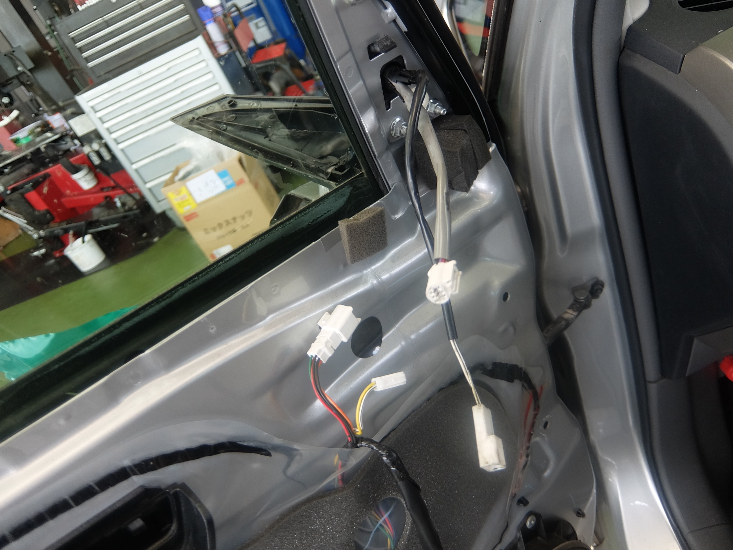 ↑ドア内張りを外して、コネクターを外します。