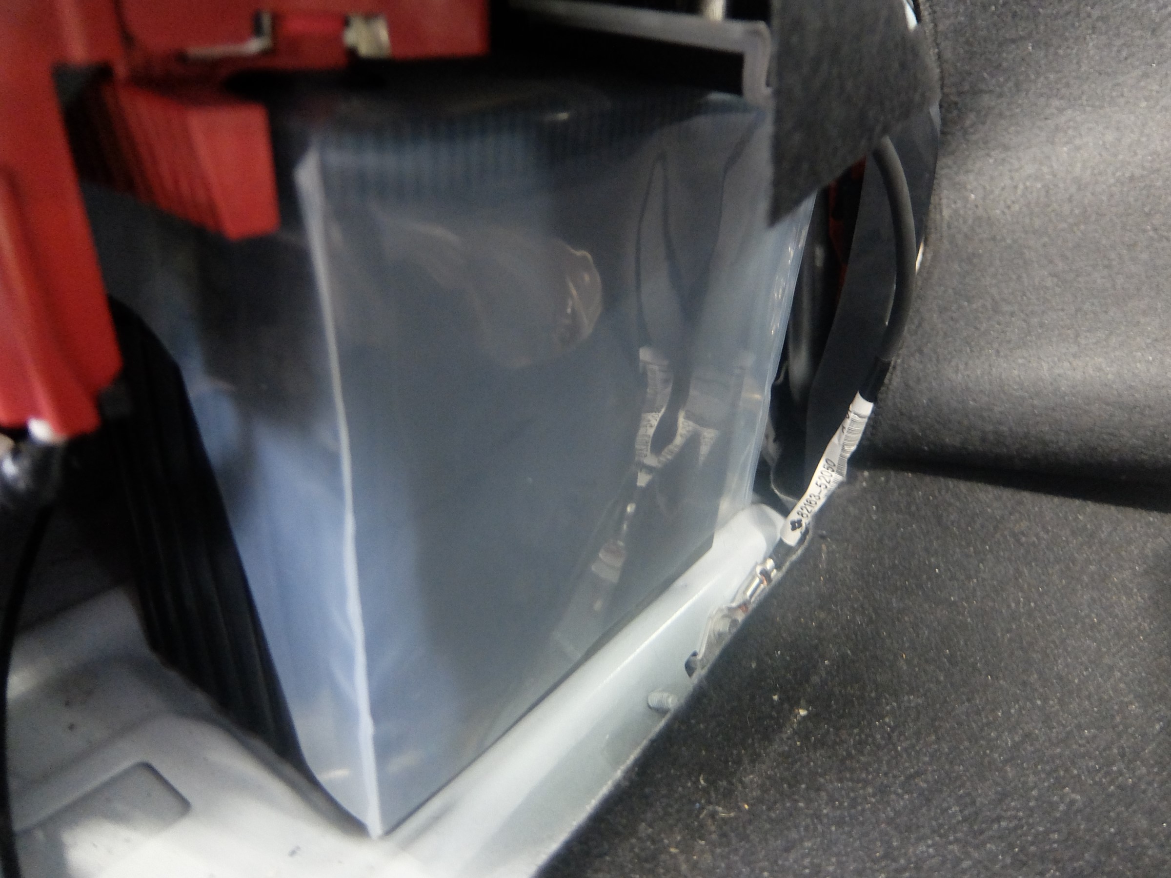 アクアの補機バッテリーは、後部座席の下に付いてあります(^。^)
