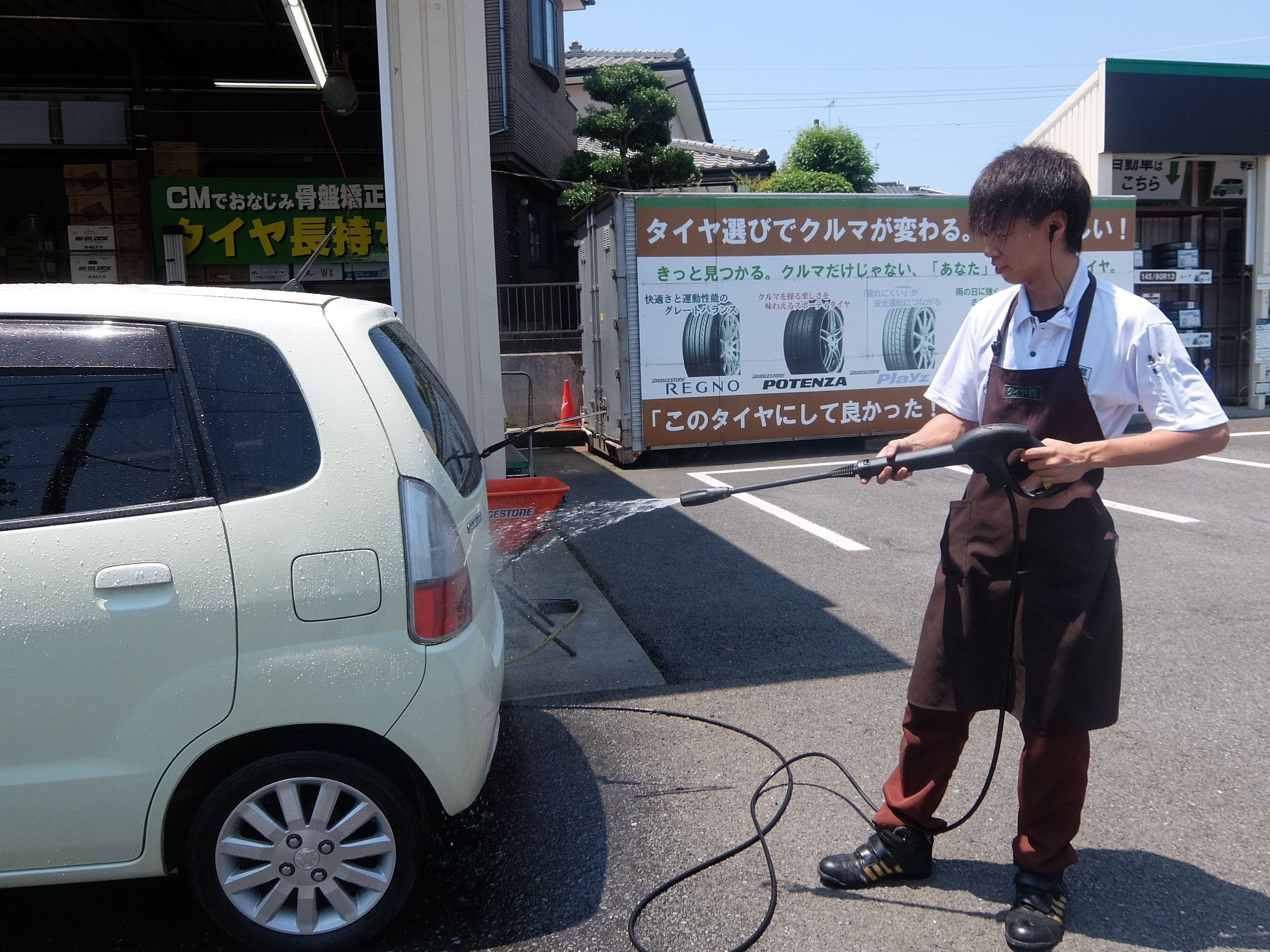 当店で車検でお預かりしている車両に関しては、基本的に洗車をさせて頂いてから御納車いたします!これがお客様の為であるのは当然ですが、洗車すること自体が好きなスタッフがタイヤ館には多いので、皆で楽しく洗車させてもらっています(笑)