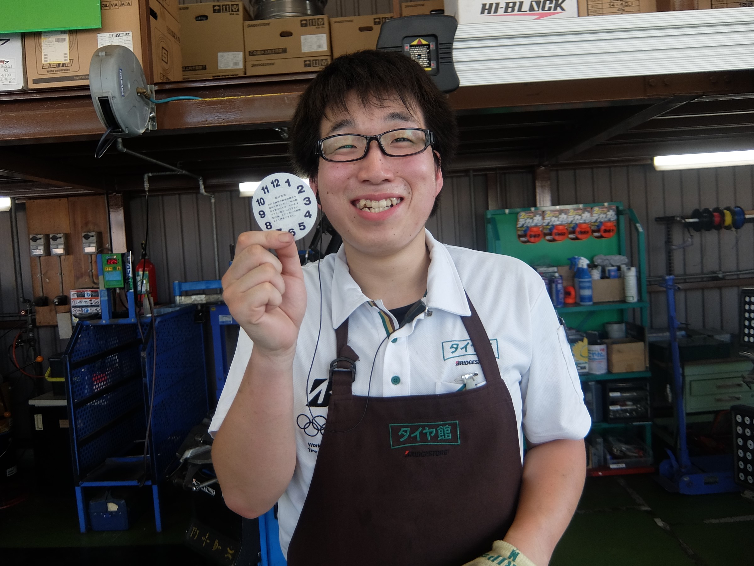 洗車が終わったらステッカーの張り替えをします。このダイヤルステッカー、皆さん見たことがあるのではないでしょうか?これは12カ月点検を受ける期限が記されているのですが、この12カ月点検が今日のテーマです。